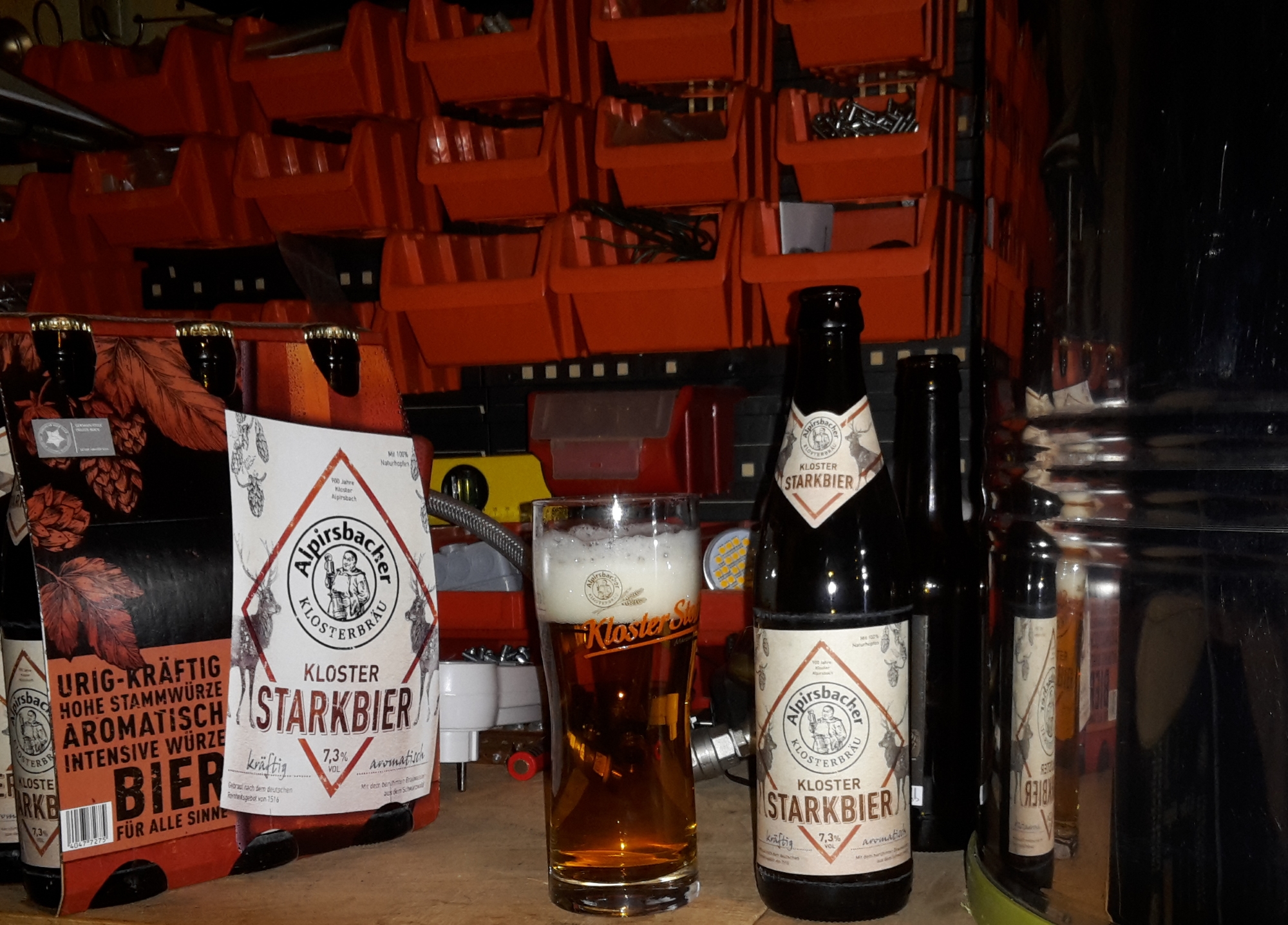 Trinke gerade ein Kloster Starkbier von der Alpirsbacher Klosterbrauerei. Das Sixpack