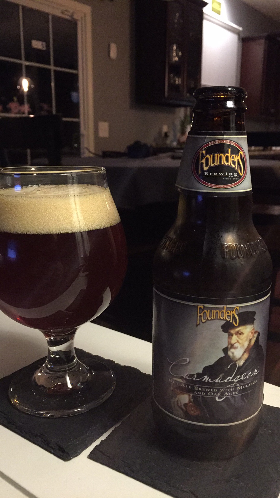 Founders Curmudgeon. Old Ale gebraut mit Melasse und im Whisky Eichenfass gelagert. 9.8 % Alkohol und 50 IBU. Bei diesem Bier wurde vor allem Wert auf das Malz gelegt.
