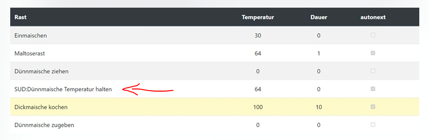 Ist bei der Hopfengabe eine Temperatur angegeben, wird diese verwendet
