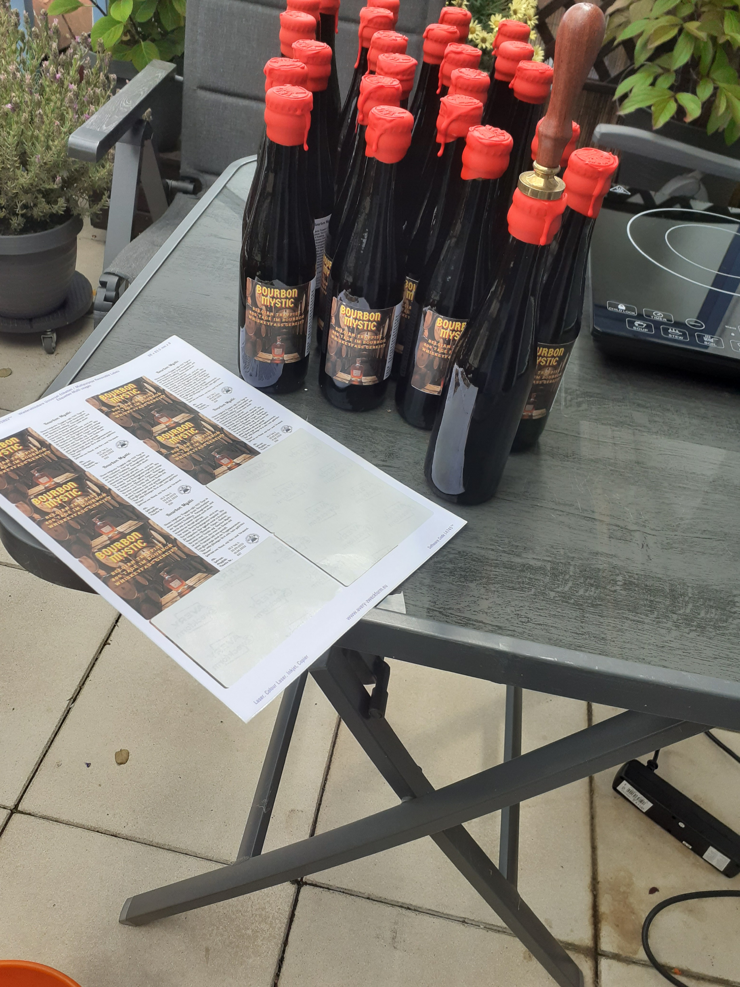 Ein Label wurde erstellt, ein Teil der Flaschen wurden zur Langzeitlagerung mit Schellack versiegelt.