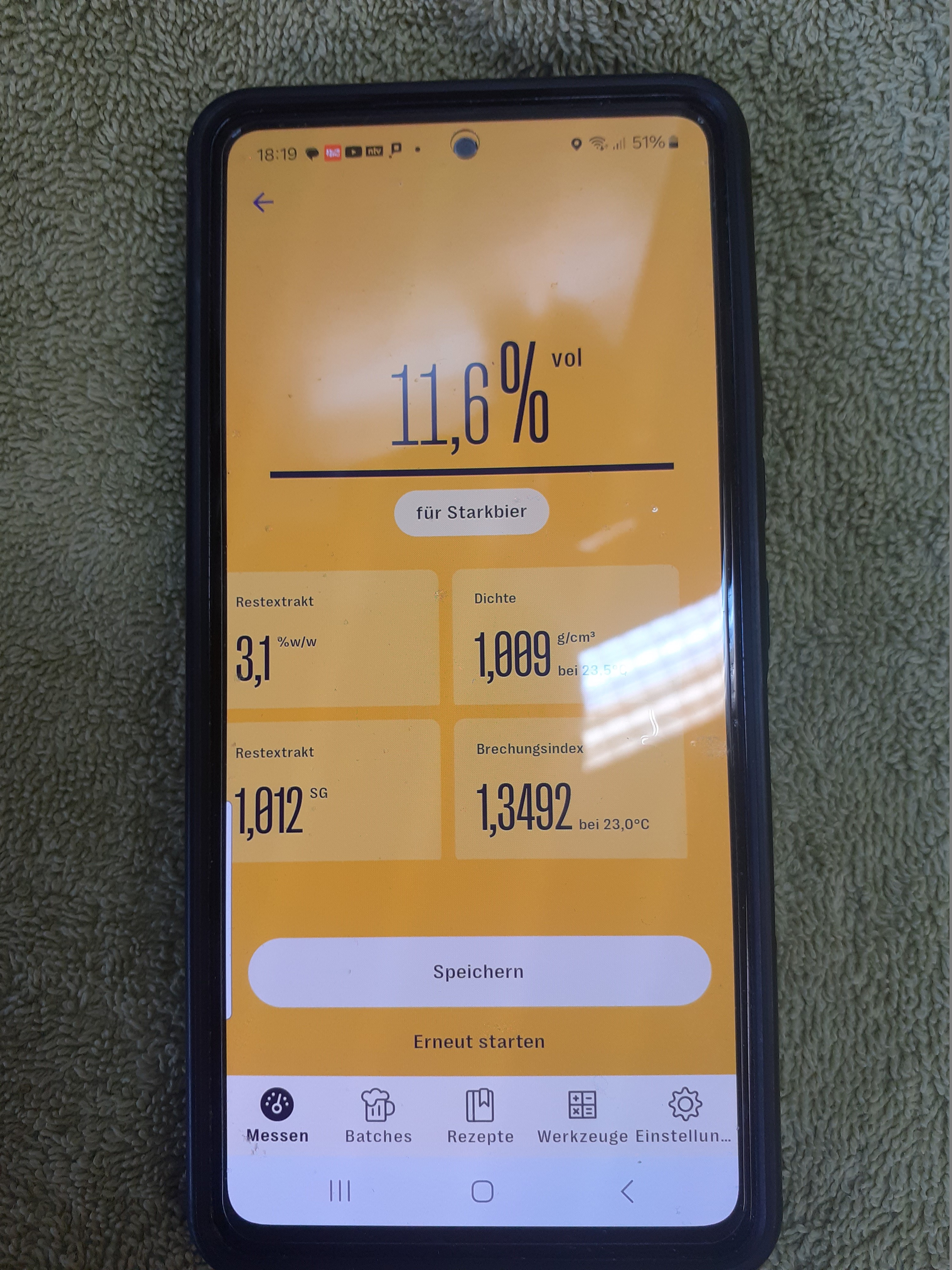 Das Bier hat jetzt einen Alkoholgehalt von 12,6%, ob da noch eine Nachgärung stattfindet oder nicht, ist im Grunde gleichgültig, Alkohol hat es eh schon genug, dann wird eben zwangskarbonisiert, oder die Restsüße steigt noch etwas, der SVG liegt bei ca. 86%.