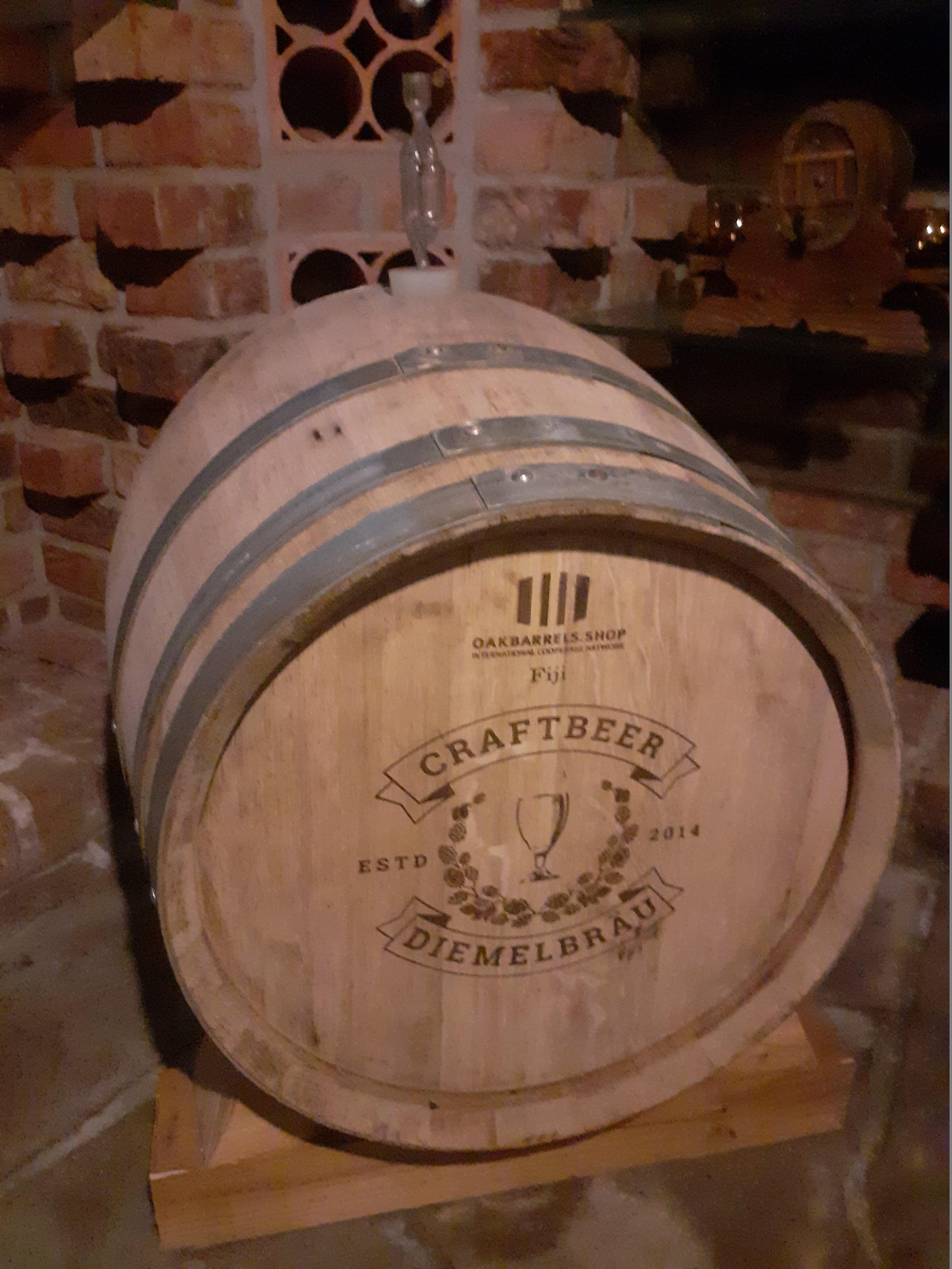 Am Montag war es so weit. Nach vielen Verkostungen Bali Wine gelagert, im vorbelegten Fass oder mit Eiche Cube aus vorbelegten Fässern geschnitten, haben wir uns, dass sind, mein Braufreund Harald und ich, für ein vorbelegtes Fidschi Rum Fass mit 110 Litern, entschieden.