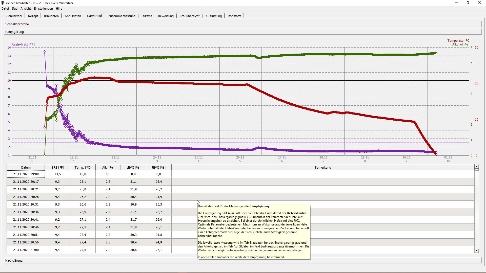- Alles markieren, kopieren und in KBH unter Gärverlauf - Hauptgärung einfügen.