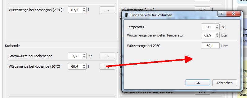 2.Im Eingabehilfedialog Würzemenge bei Kochende fehlt die Hilfe mit cm-Eingabe.