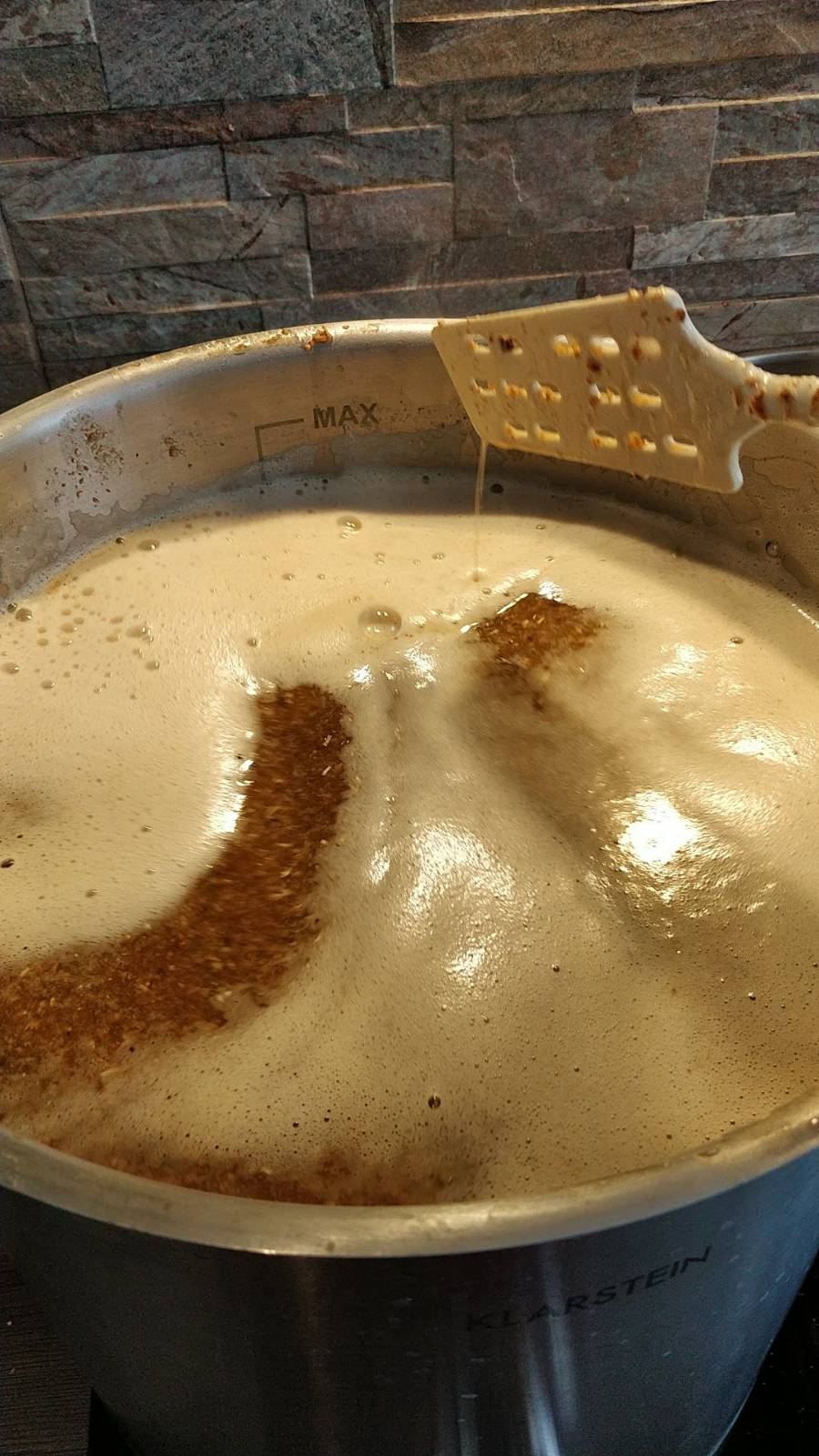 Lief alles wie am Schnürchen im Malzrohr. Nachguss ist locker flockig durchgerauscht