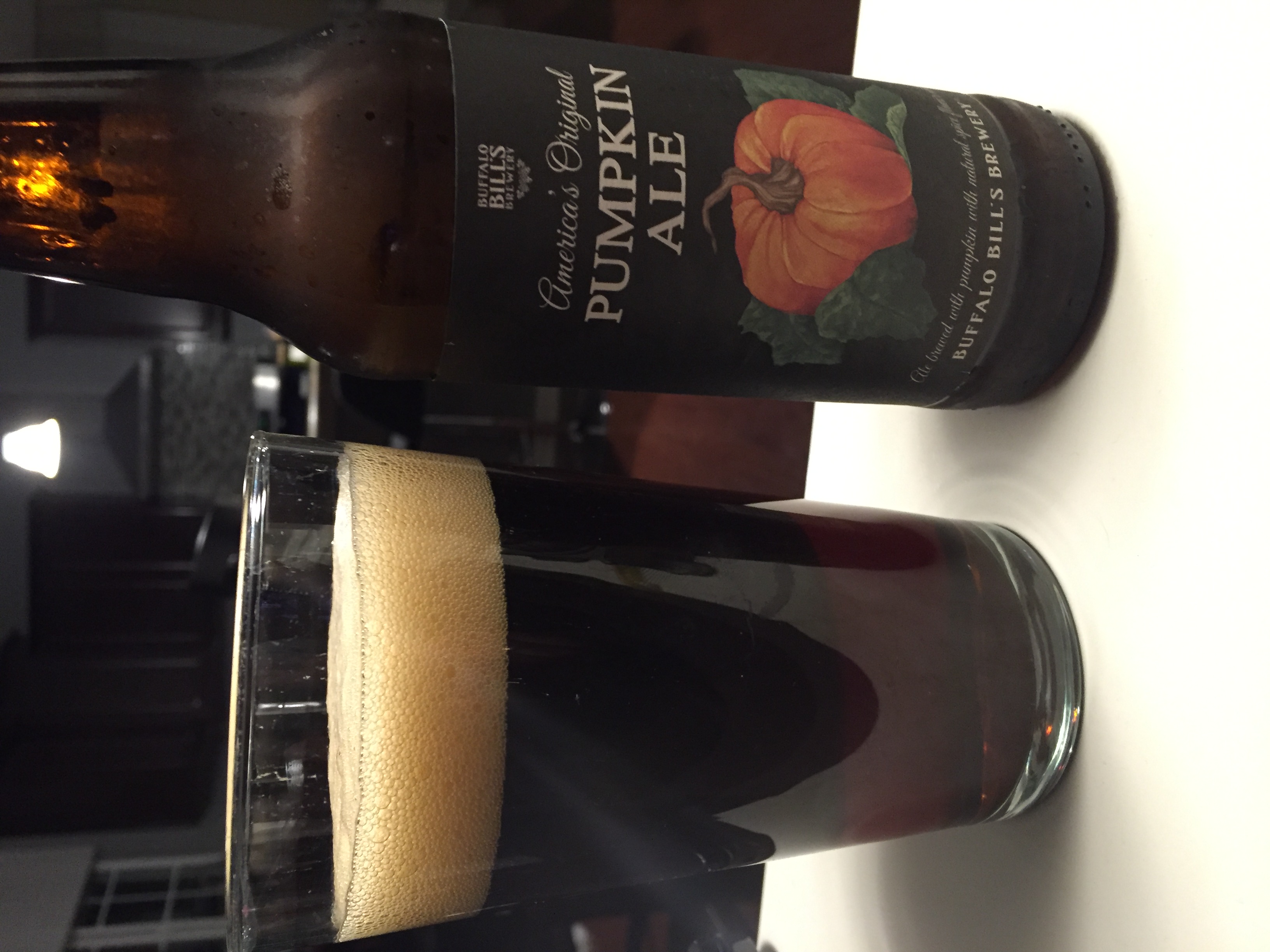 bei uns wird's Zeit für Oktoberfest Biere, dann wird es hier in USA Zeit für Pumpkin Ale. Das erste dieses Jahr. Buffalo Bills Brewery America's Original Pumpkin Ale. Brewed with Pumpkin and Spices. Typischer Pumpkin Spice Geruch. Ungewöhnlich dunkel. Geschmacklich sehr trocken aber deutliche Gewürznoten.