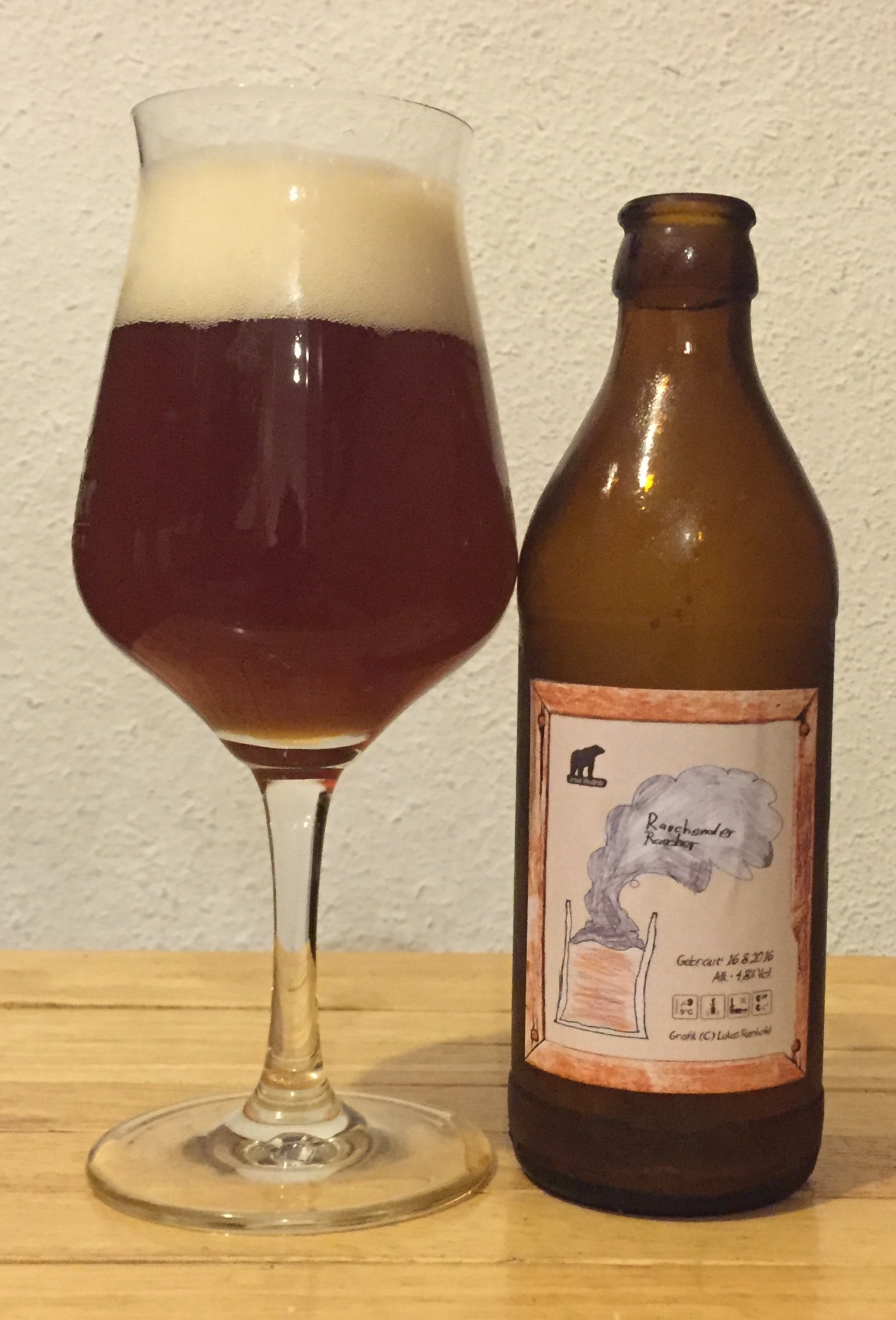 Hab mit meinen Sohn Lukas heute ca. 65 Flaschen Rauchender Raucher (Rauchbier) etiketiert, 62 Flaschen Schwarzbier abgefüllt und 23l IPA mit Kazbek und Summit gestopft. Jetzt vom ersten, ein Raucher, kurz nach der NG schon prima.
