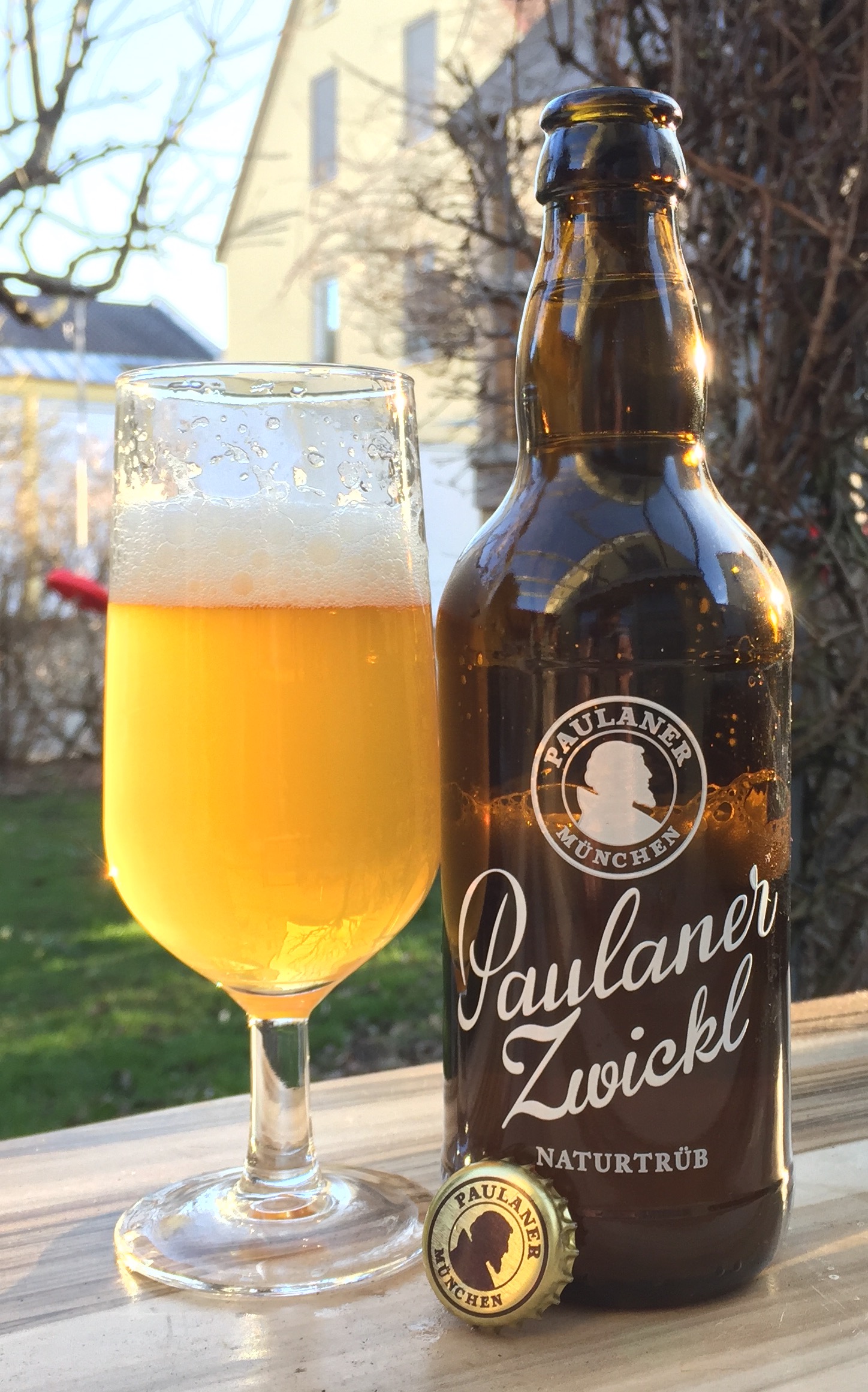 Paulaner Zwickl in der vorn bedruckten (hinten etikettierten) 0,4l-Flasche. Recht süffig, aber auch nichts besonderes. Trotzdem lecker und erfrischend für den Sommer.