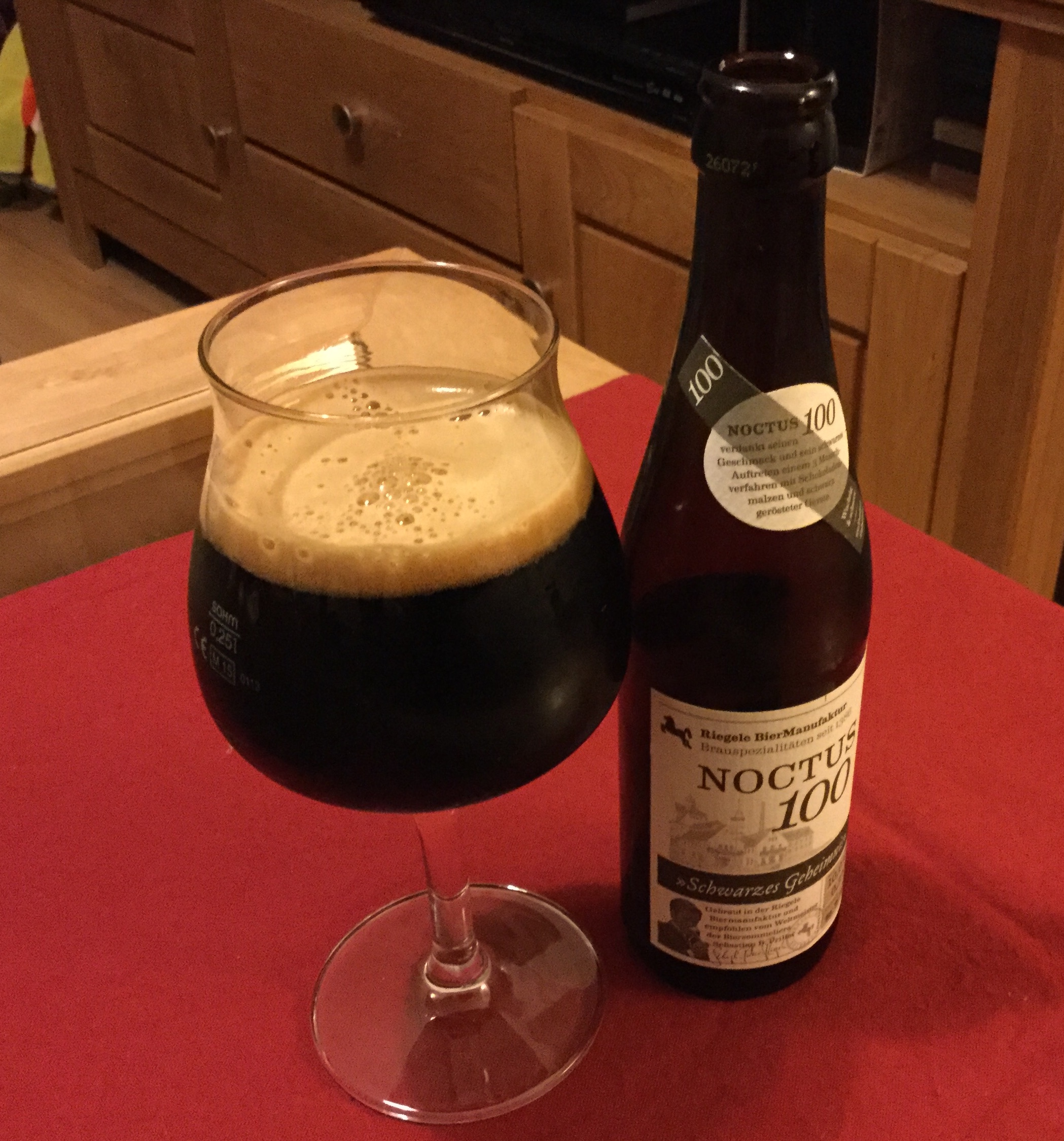 Was soll ich sagen: Wie alle Riegele-Sachen top ausbalanciert. Cremig, dickflüssig, pechschwarz, leicht rauchig, voller Geschmack, leichte Kaffeenote, leicht fruchtig-sauer im Abgang. Wow! Wenn ich da nicht gleich gut einschlafe ...