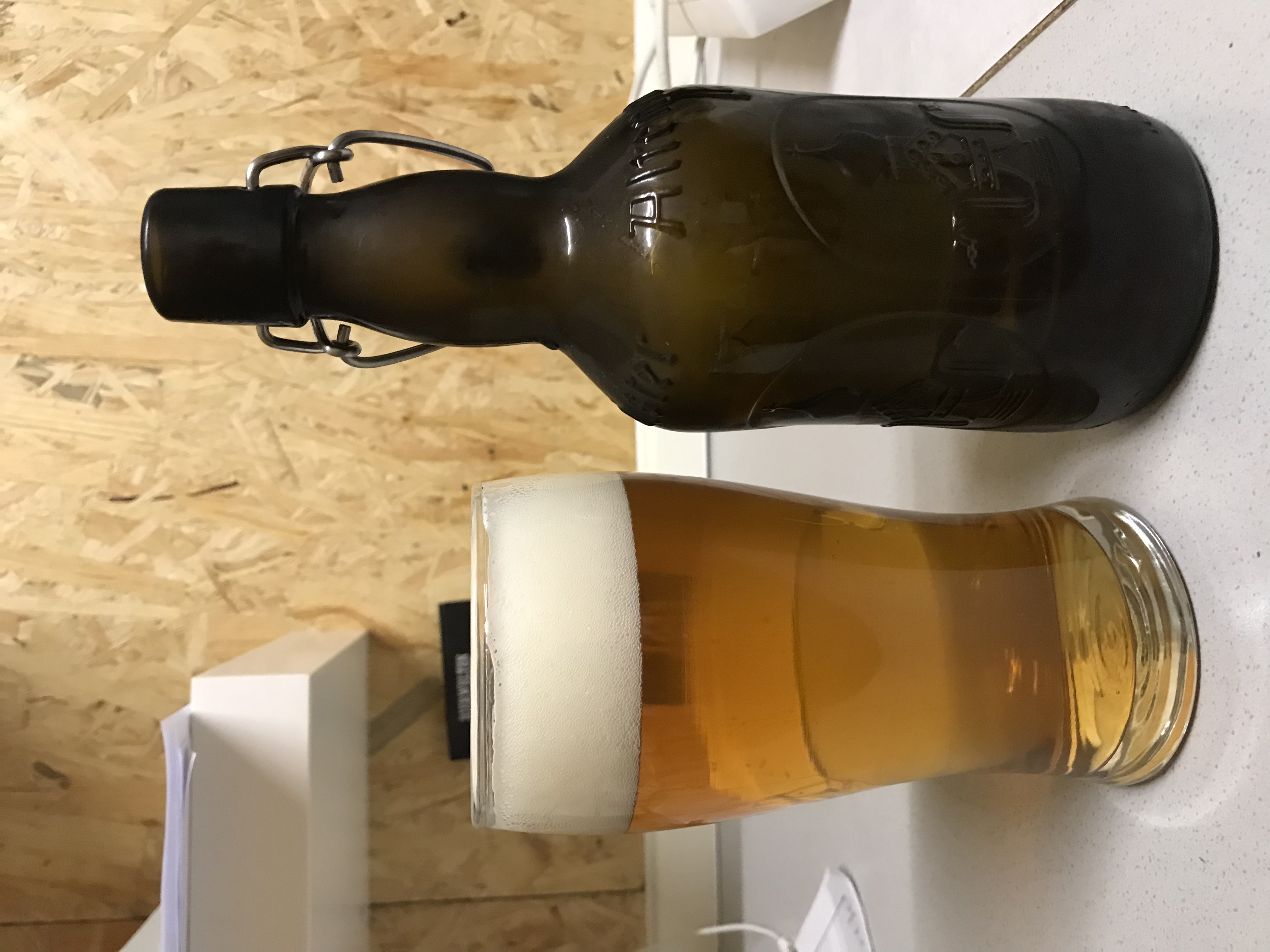 Habe mir gerade eins meiner Kölsch eingeschenkt, während die Dickmaische des Schwarzbiers bei 68°C rastet. :Drink