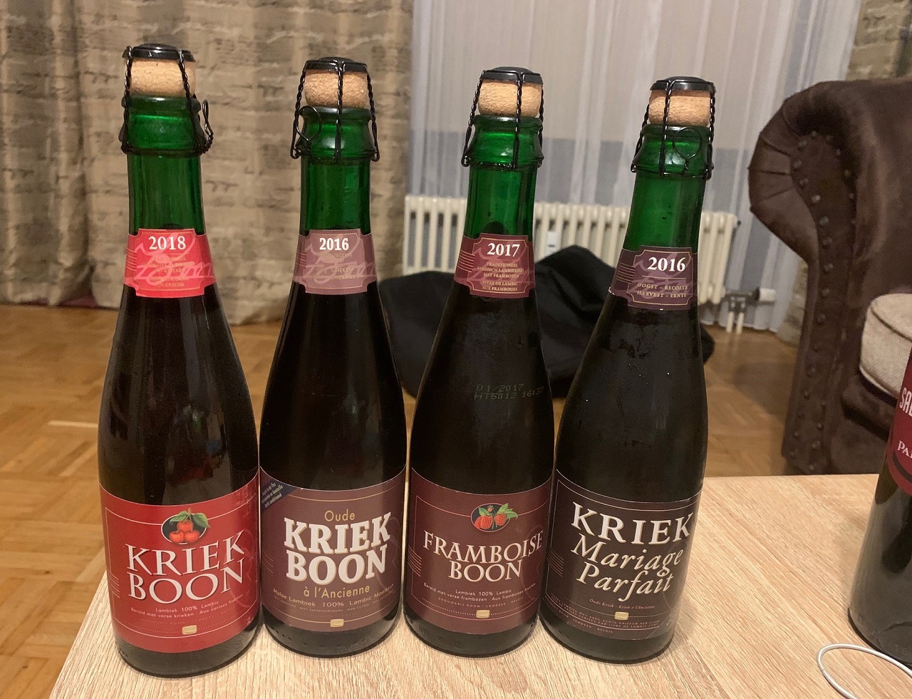 Anfangs parallel verkostet war zuerst das leckere Oude Kriek leer getrunken, danach das Mariange Parfait, gefolgt vom Himbeer Boon und nach einer langen Pause das einfache Boon Kriek, das im Vergleich zu den anderen wirklich nur nach Zucker und Sirup schmeckt.