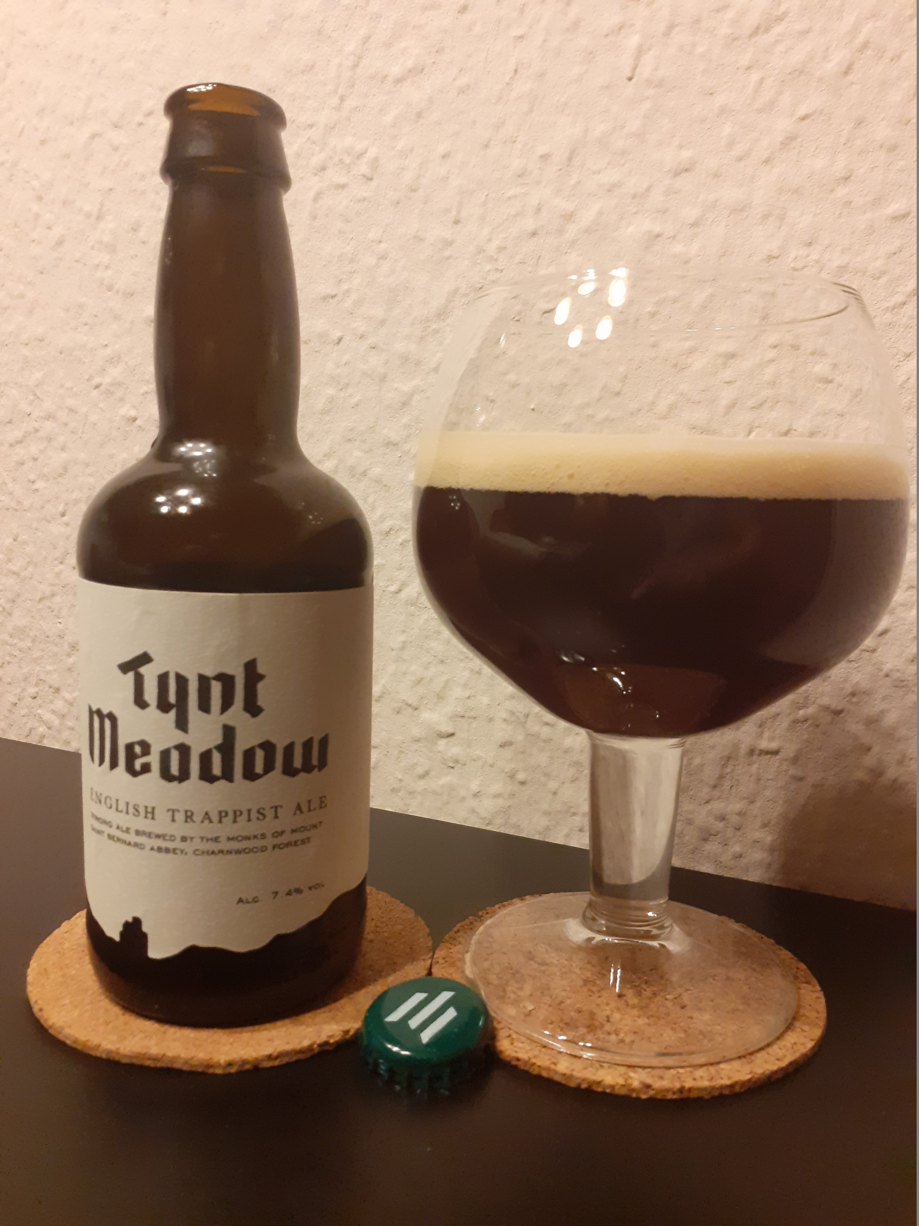 Einen englischen Trappist "Tynt Meadow", gebraut von den Mönchen der Mount Saint Bernard Abbey.