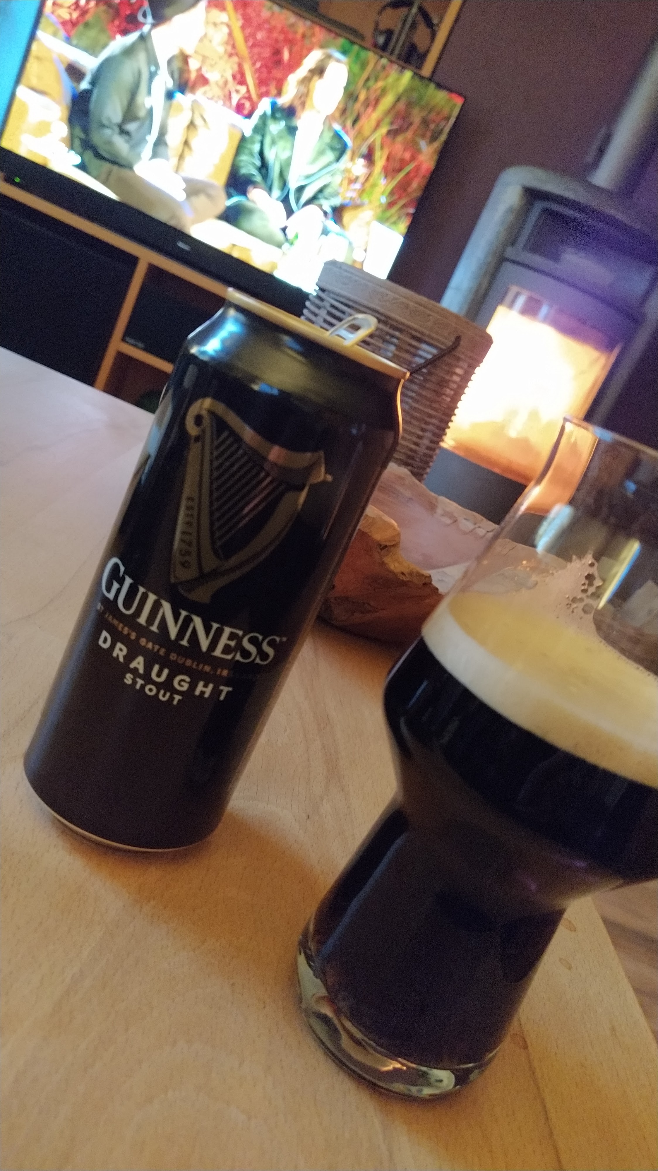Da das schöne Wetter mal wieder Pause macht ... Kamin an, Füssen hoch, Decke drüber und ein Guinness öffnen.