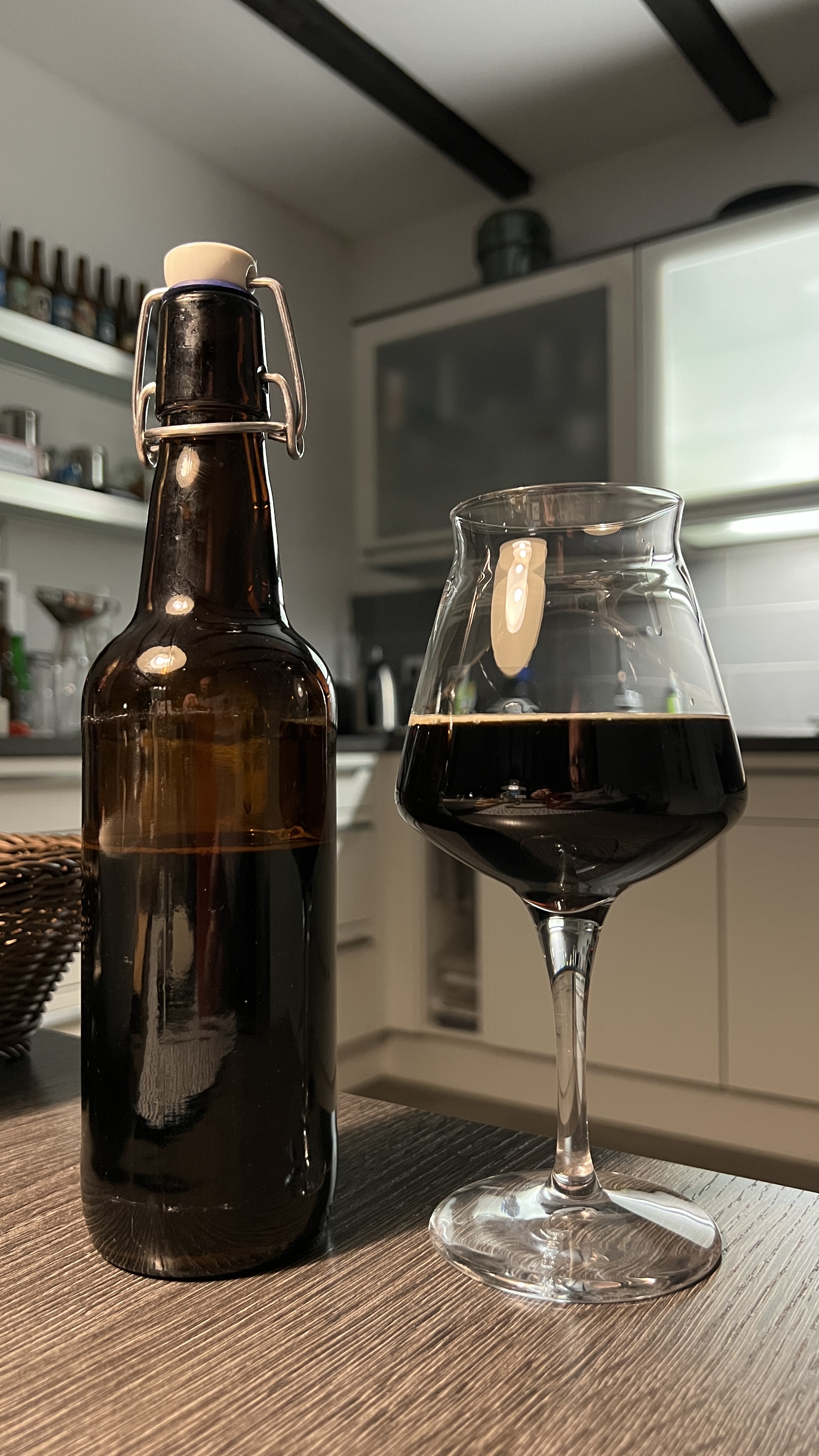 Ein Stout von Braukollege Martensit. Bis auf die nicht ganz ausreichende Karbonisierung (er hat mich vorgewarnt) ein durchaus gelungenes Bier. Meine ersten Versuche waren deutlich unrunder. Gute Röstbittere, aber nicht zu viel. Nicht zu süß, passt gut zusammen.