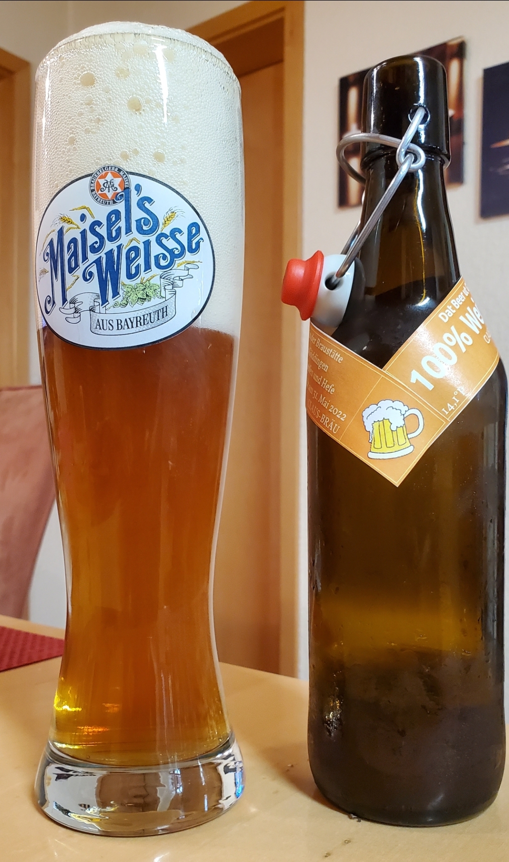 Mein fast einjähriges 100% Weizen. Immer noch toller, steifer Schaum, tollem Mundgefühl und immer noch präsentem Hallertauer Blanc.