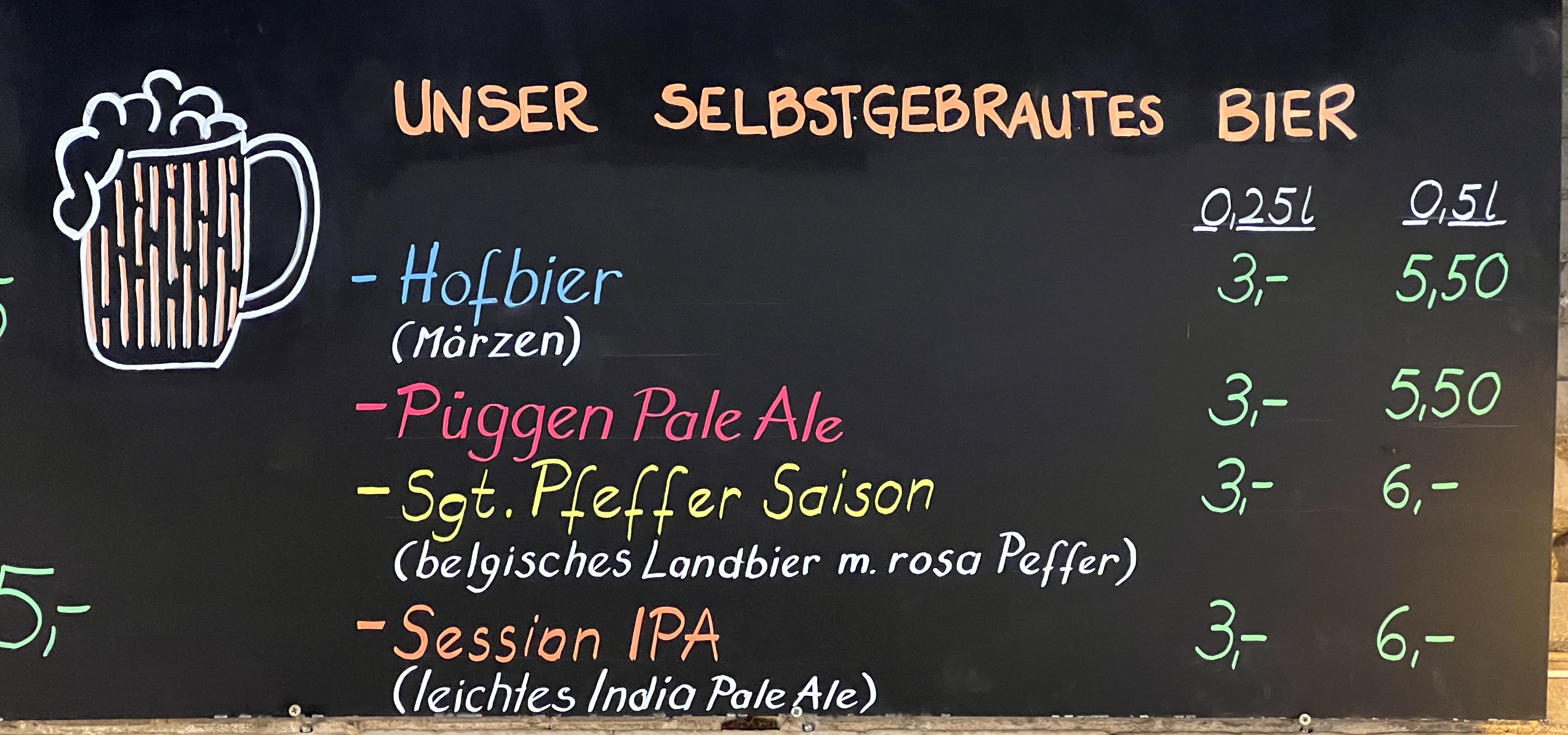 Da hast Du leider was verpasst. Das finde ich ziemlich lecker. Es ging noch ein anderes Bier mit rosa Etikett. Irgendwas mit „Fee“. Das ist auch sehr lecker.Das hauseigene IPA war aber leider aus...
