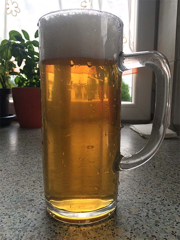 Eingebraut am 21.1. aus PiMa (1/2 böhmisches, 1/2 normales), Carahell und eine Spur Weizenmalz für den Schaum. Zarte Hopfung mit Magnum nach Würzebruch und Saazer. Vergoren mit W34/70. Gefährlich süffig, oben am Glas sind die Schlieren zu sehen, weinig.
