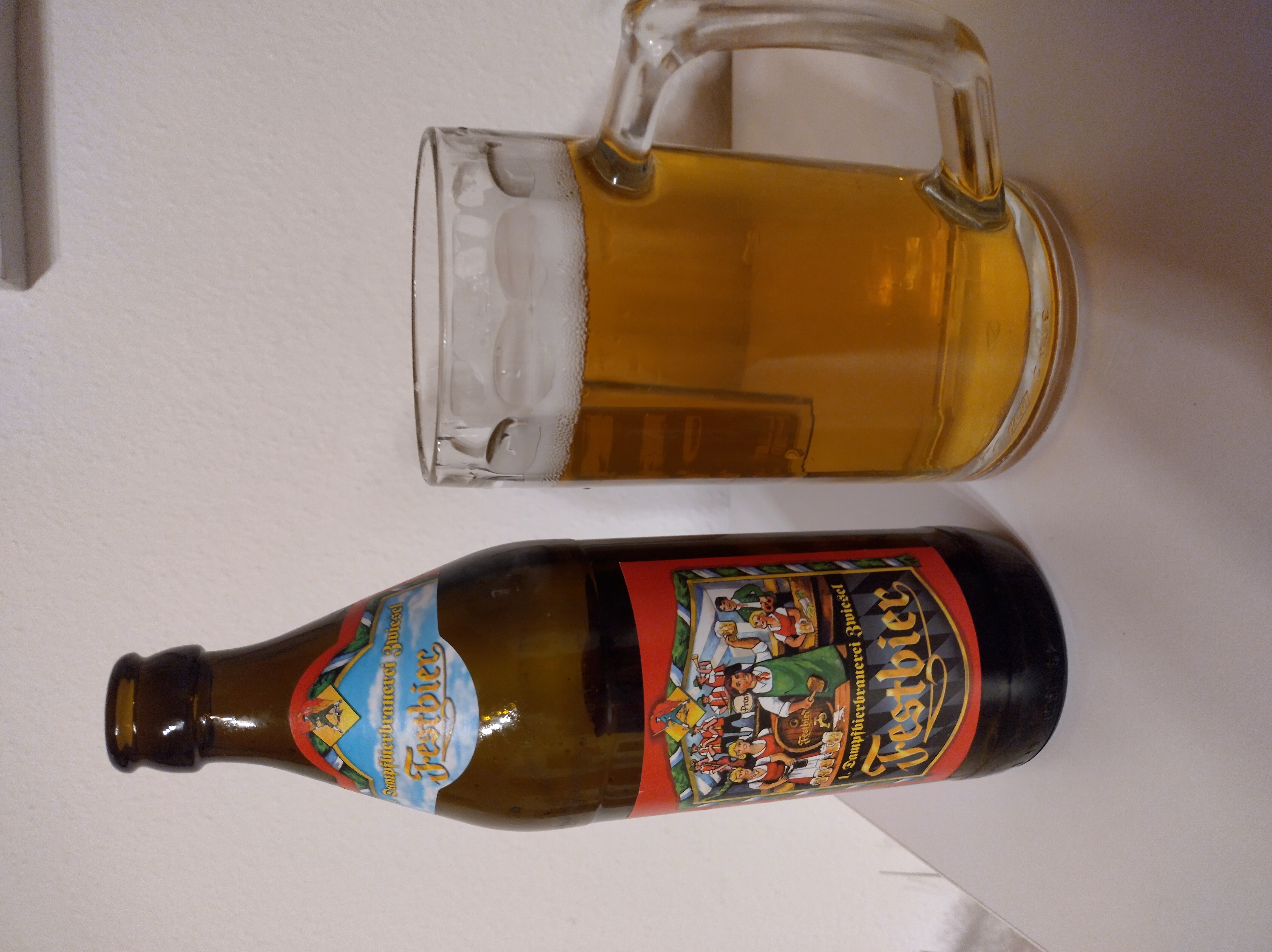 Aktuell gibt es mein eigenes Kellerbier. Lecker malzig, würzig, süffig und mit einem Hauch von blumigen Hopfen und dezenter Bitterkeit.