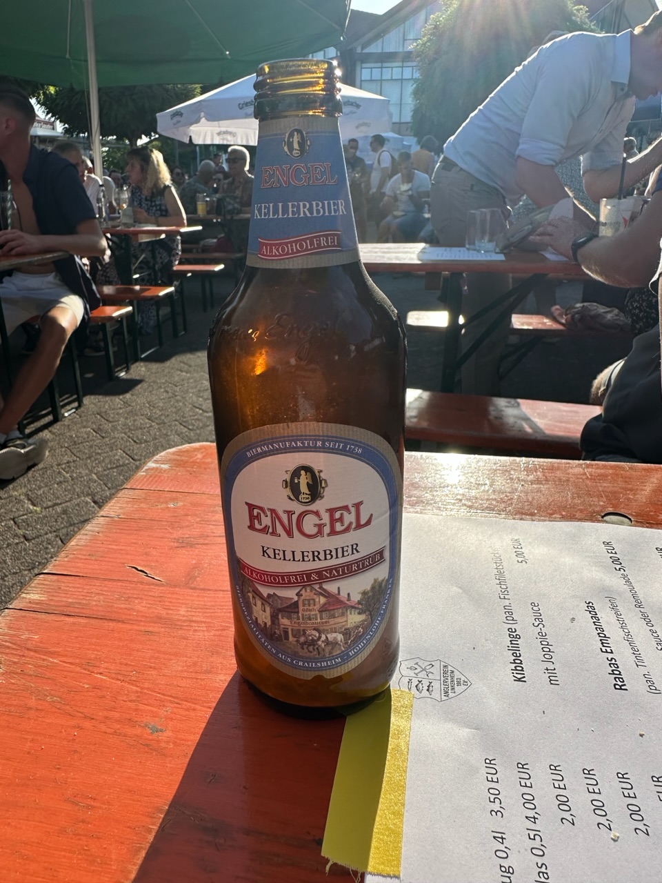 Oettinger Kellerbier. Erstaunlich gut. Aus Spaß mitgenommen, keine Fehler, rund, kein Hopfen Extrakt Geschmack. Läuft.