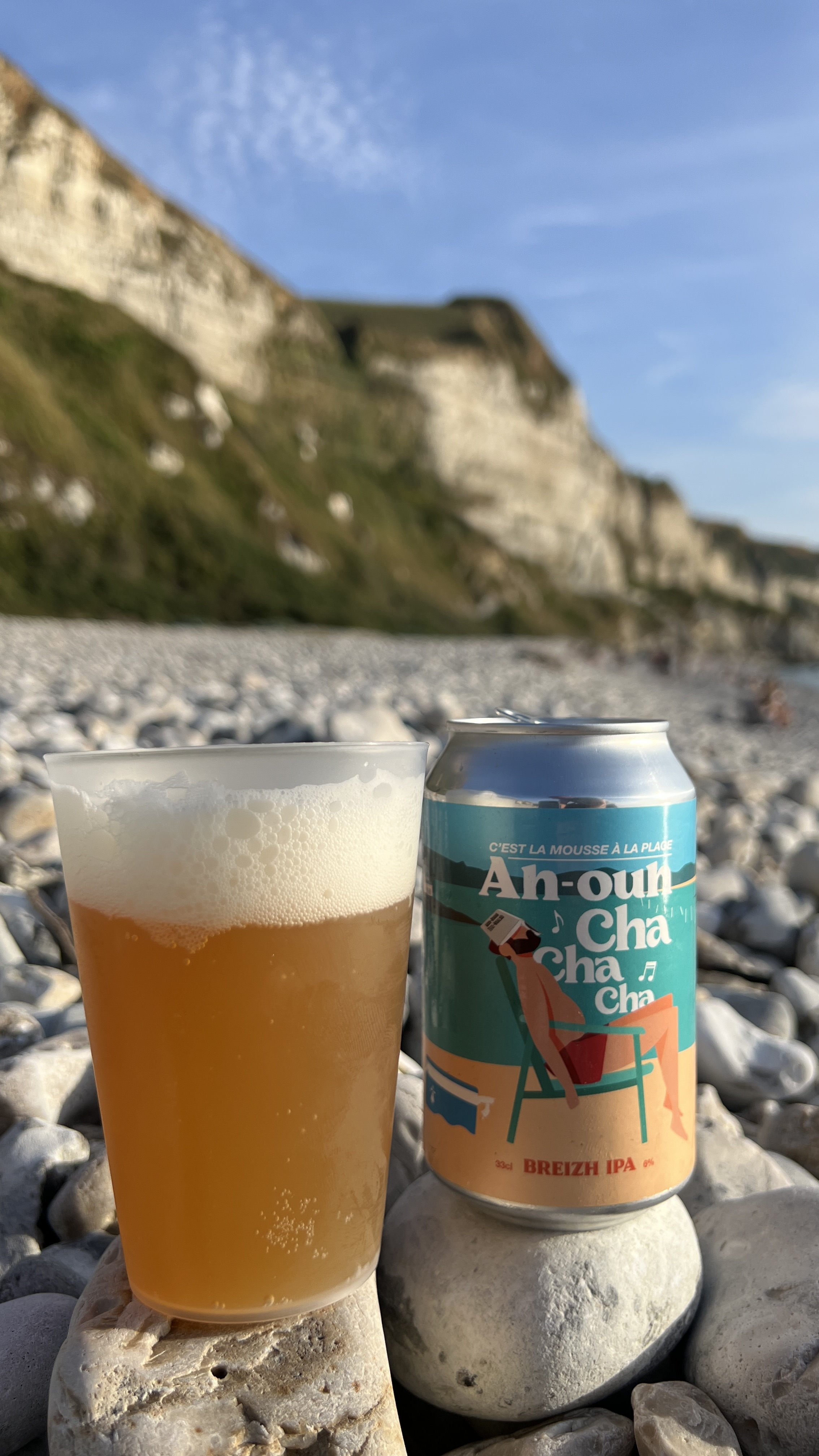 Ein IPA von Brasserie Domani aus der Bretagne am Stand von Saint-Jouin-Bruneval in der Normandie. Das Bier ist gut, aber nicht besonders. Die Kulisse ist klasse.