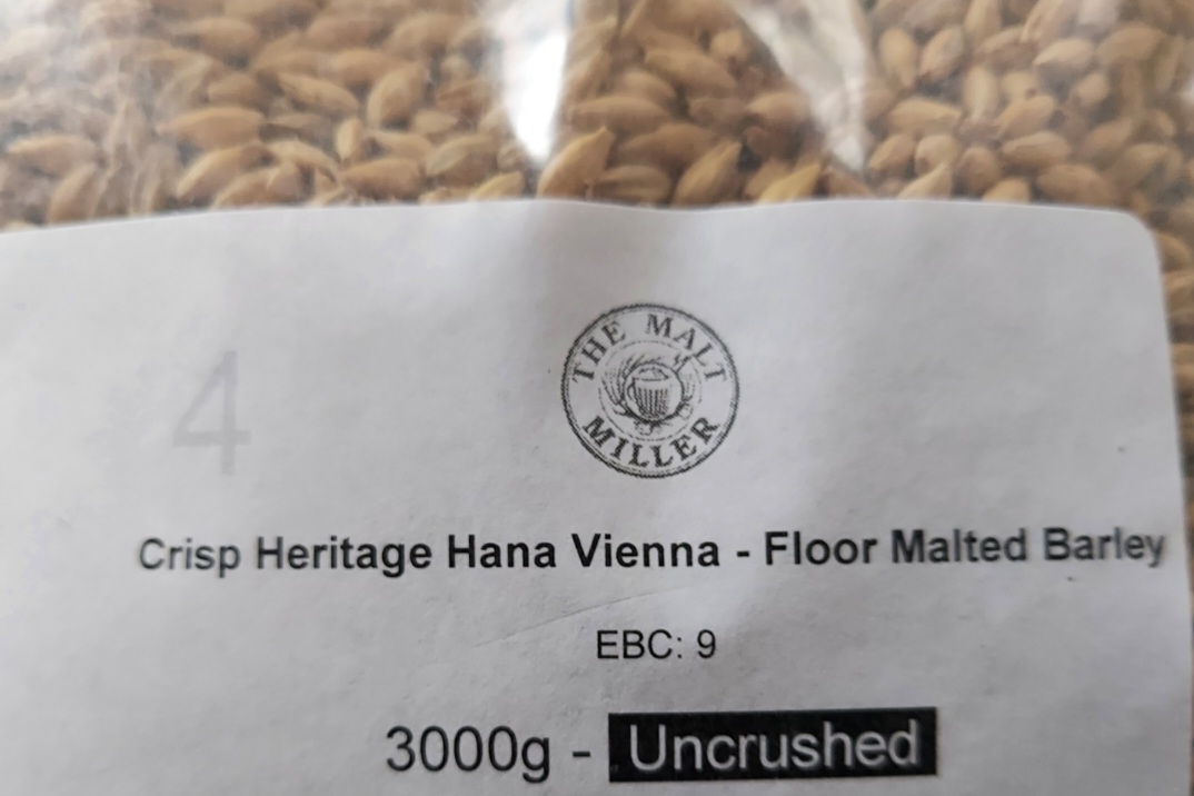 Die Schüttung hab ich seit dem letzten Sud fortentwickelt, Wiener statt Pilsner Malz, MüMa und Röstmalz reduziert und dafür Caramünch inkludiert.
