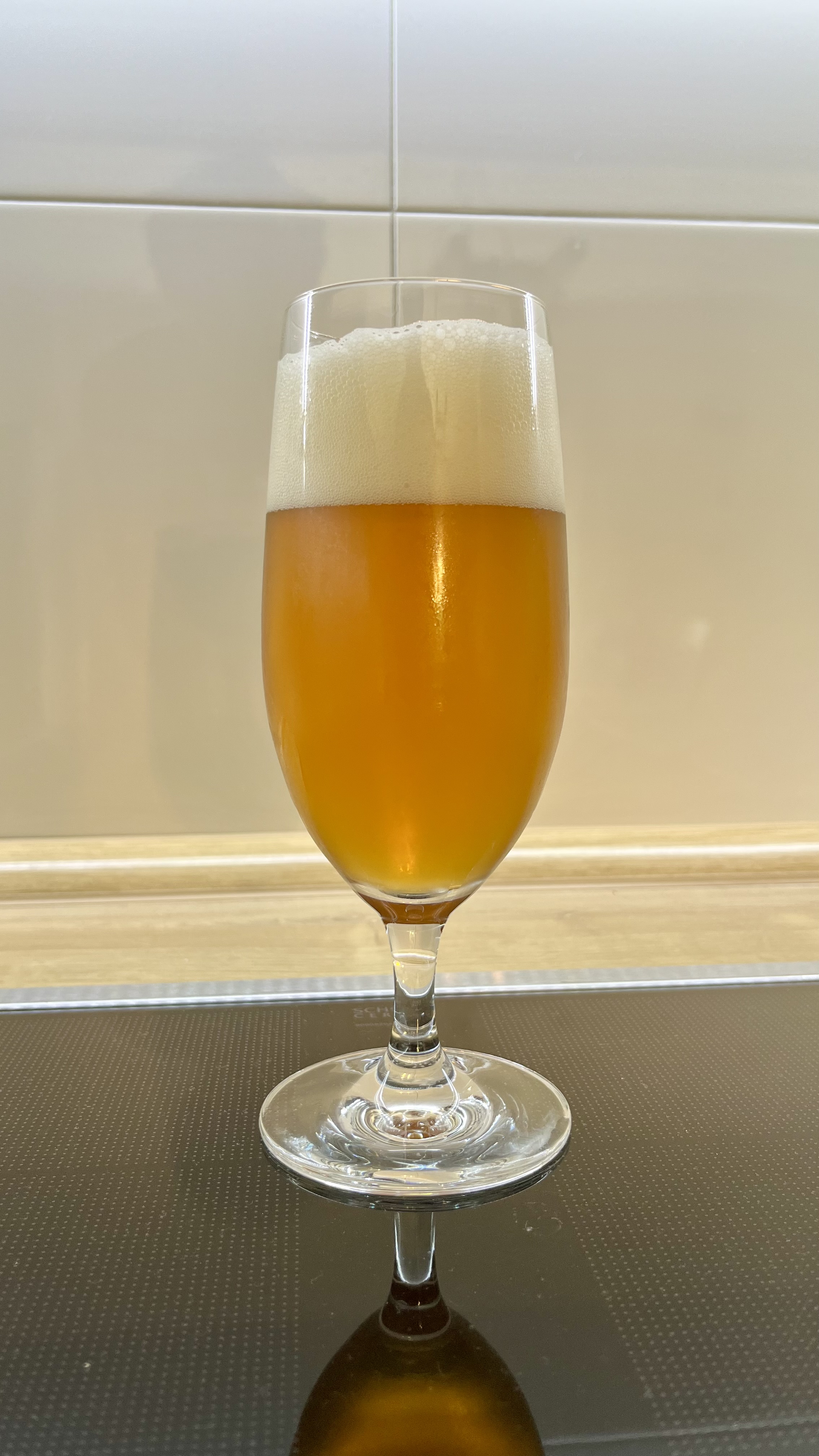 War am Wochenende mit bei Bekannten, deshalb ist es etwas trüb. In der Flasch war es glasklar. Das Böhmische Pilsner mit einer LUTRA vergoren ist echt klasse.