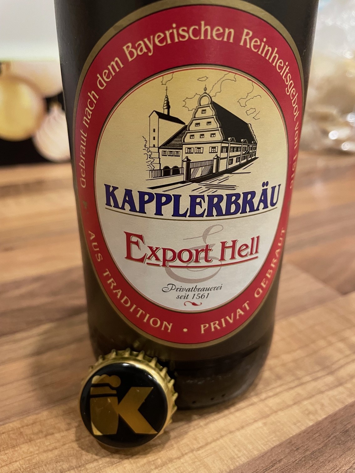 => ein Kapplerbräu Export Hell. Es ist genau so, wie ich es mir vorstelle: glanzfein, hell, Karbonisierung zurückhaltend, süffig, unaufdringlich. Tolles Produkt.