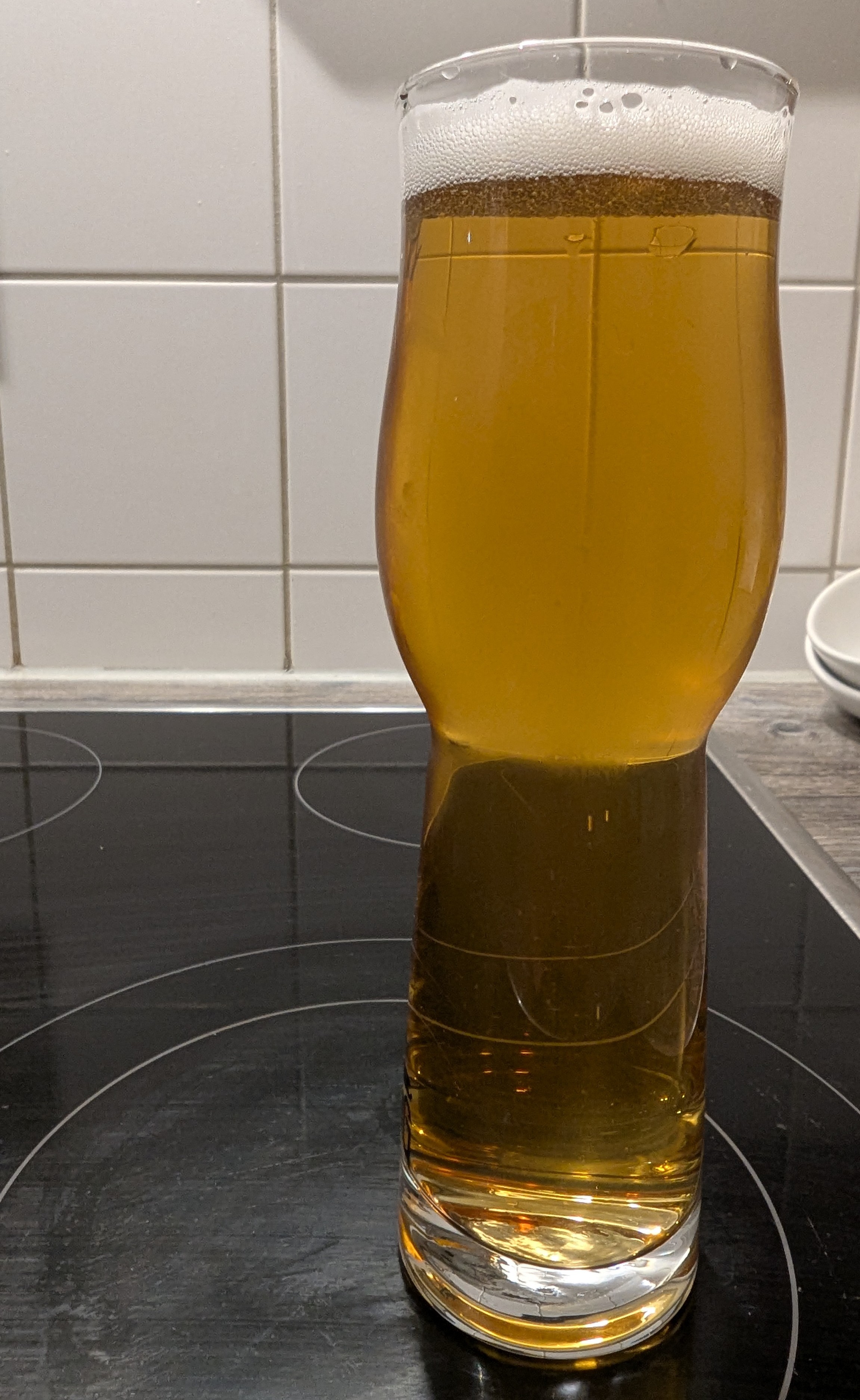 Bei mir gibt es etwas was ich einfach mal als "Ale" bezeichnen würde. Gebraut Anfang Januar als ein erstes eigenes Rezept und ich kann gar nicht mal sagen, wo genau ich hin wollte. Stammwürze 14.0 (höher als geplant), 70% Pilsner, 25% Wiener, 5% Carahell, Citra und Cascade auf ~25 IBU und im Nachhinein viel zu wenig im Whirlpool, um auch nur annährend Hopfenaromen zu bekommen. Mit US-05 am unteren Ende der machbaren Temperaturskala vergoren.
