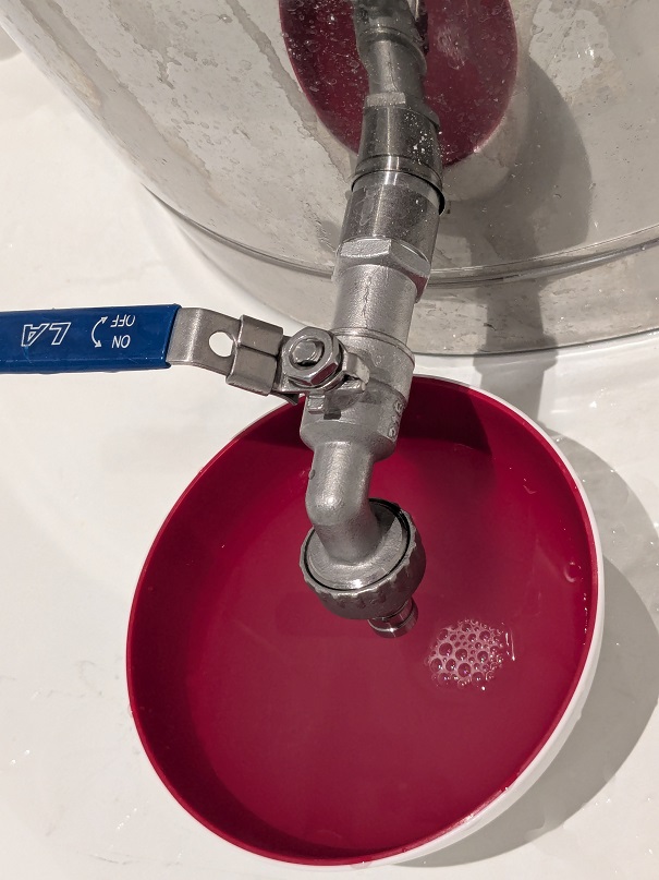 Ich habe keine mechanischen Reinigungsinstrumente benutzt. Nach Ablassen der Lauge und 2mal abbrausen mit Warmwasser mal kurz ohne Druck mit einem Handtuch über die Seitenwände gewischt. Sichtbar ist ein dünner weisslicher Belag, der sich problemlos trocken abwischen lässt. Die "Schaumringe", die die Maische hinterlassen hatte, sind zu nicht mehr zu sehen.