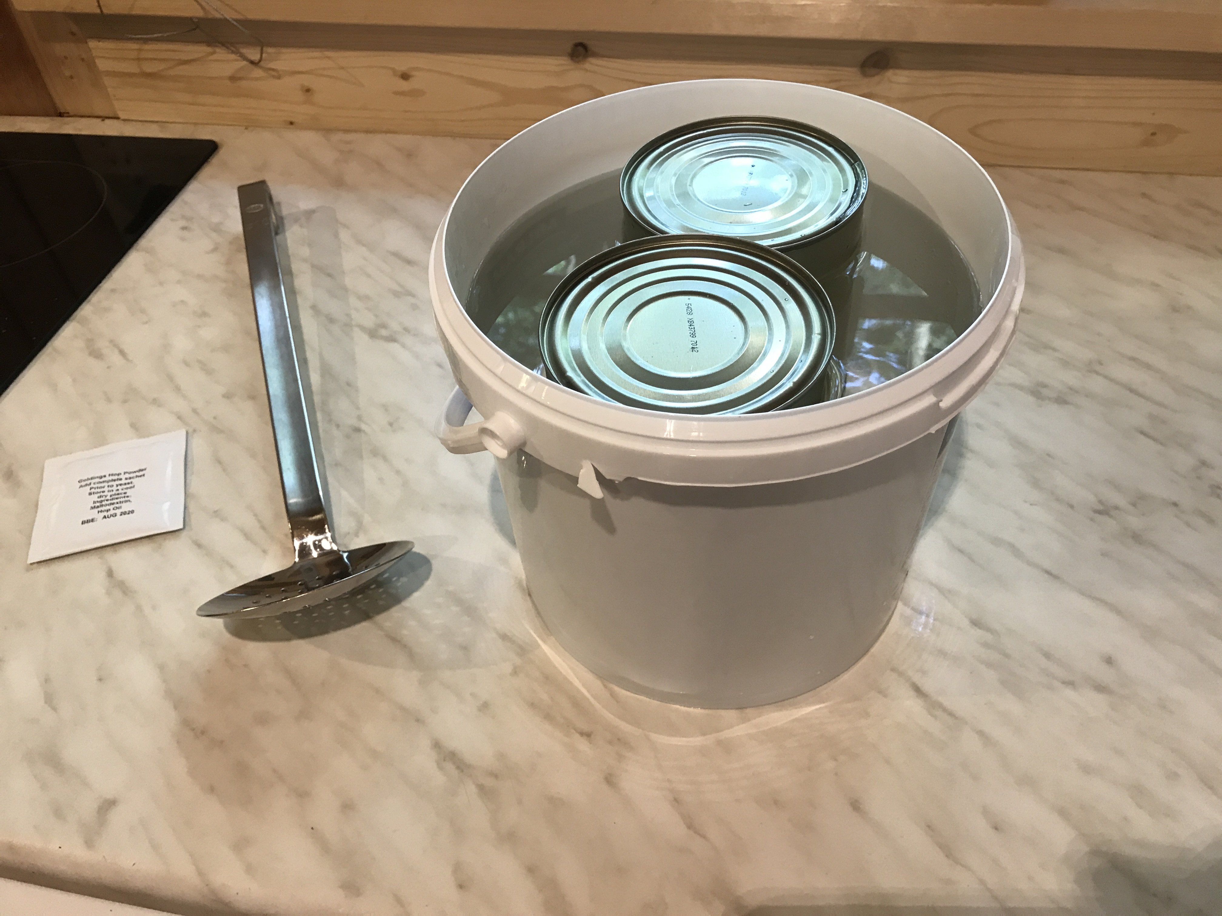 Anschließend sollte ich laut Beschreibung die Dosen mit dem Malzextrakt in heißem Wasser 5 min aufwärmen