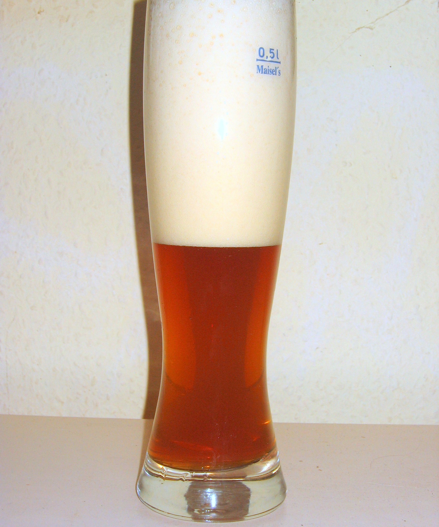 Etwas dunklere, goldige Farbe. Malzig und dezent gehopft. Leichte Caramelnote, obwohl es