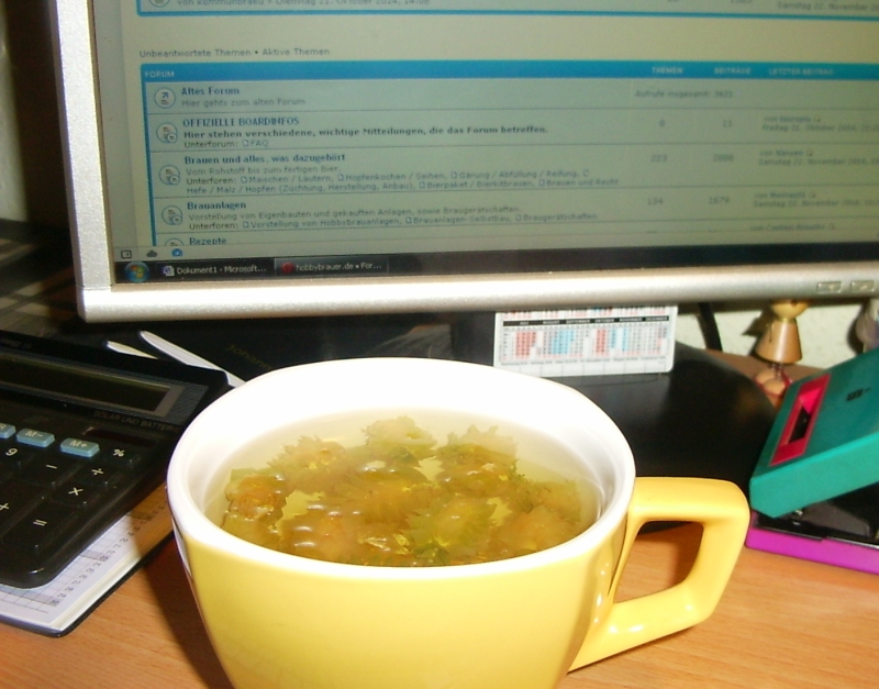 Heute mal Hopfentee, gestern waren es wohl 1-2 Doppelböckchen zuviel.