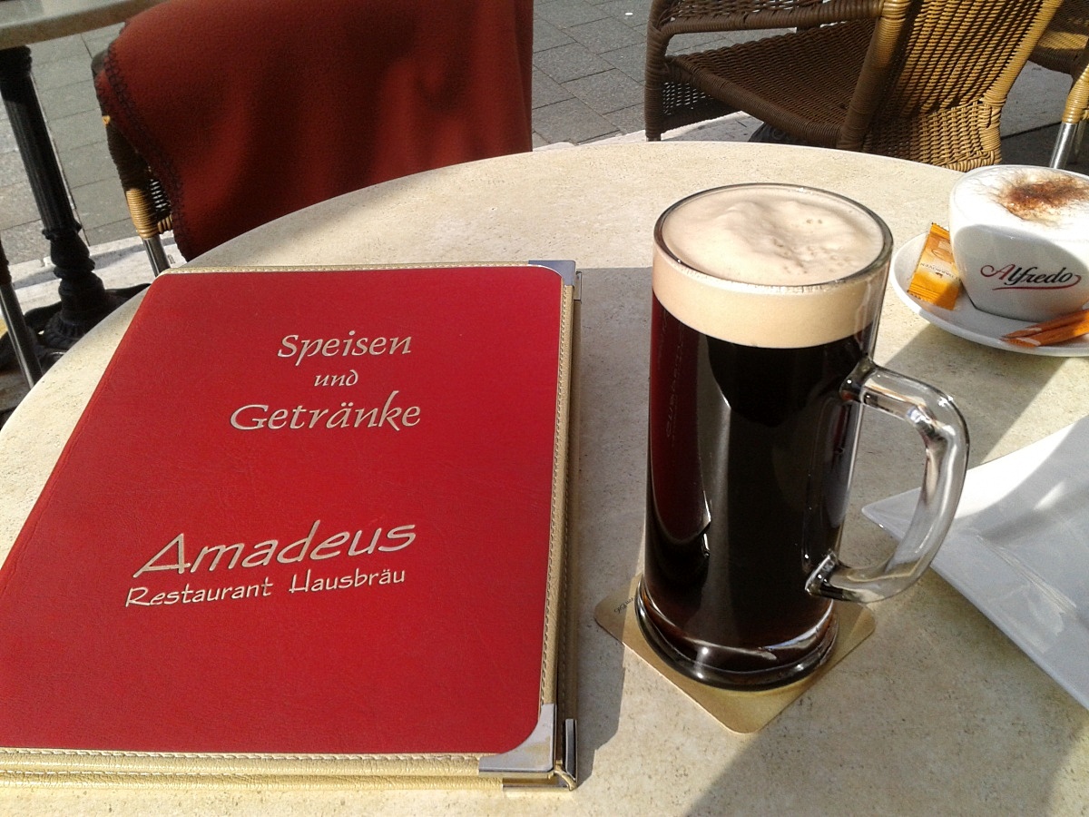 Beim heutigen Stadtbummel durch Baden-Baden kam ich am Leopoldsplatz vorbei und musste feststellen dass beim Amadeus Hausbräu die Terrasse schon geöffnet ist. Ich habe keine drei Minuten gesessen da stand auch schon die erste Gallone Schwarzbier auf dem Tisch.
