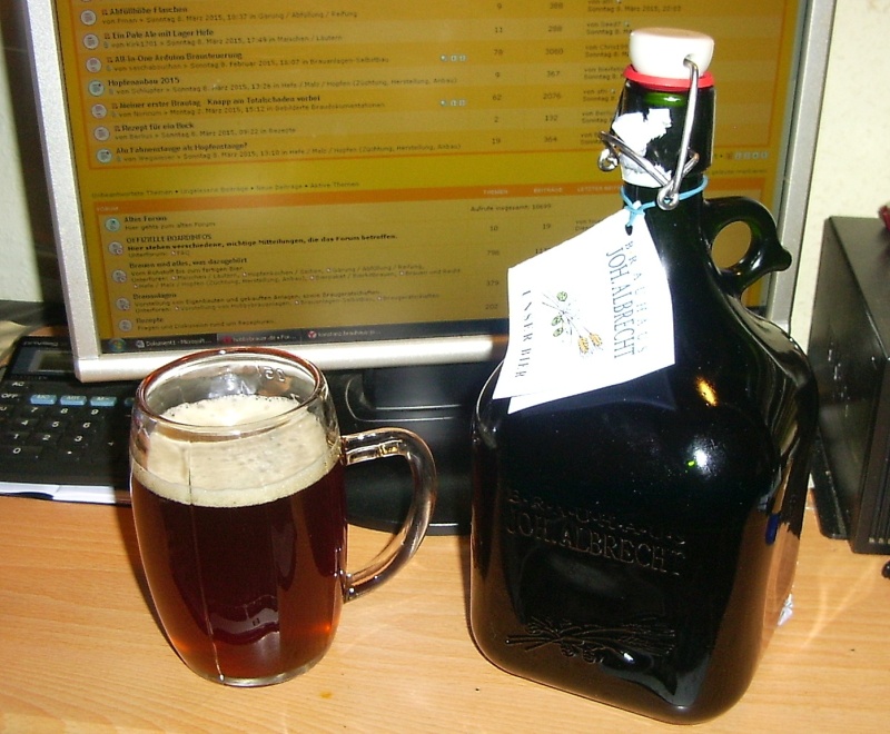 1a Bierchen, nur werde ich beim nächstenmal etwas weniger Hopfen nehmen, es kam mir für diesen Typ doch einen Ticken zu bitter vor, bzw. die längere Reifezeit hat es auch gerichtet - nur will man nicht immer so lange warten :Wink