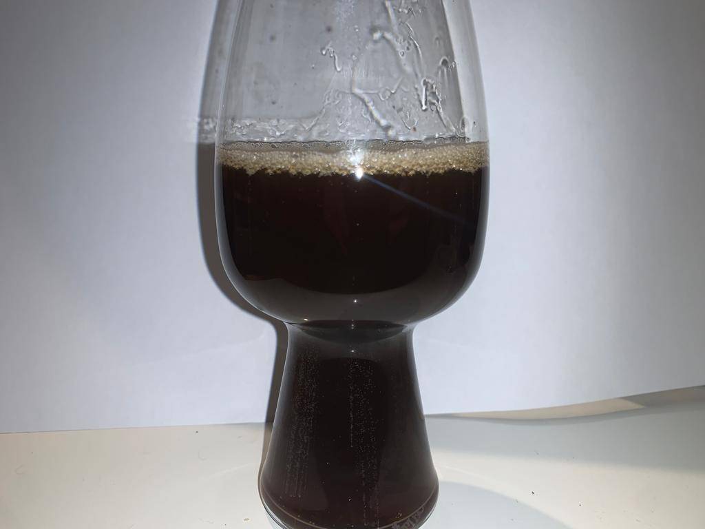 Ein Baltic Porter, das wir am 26.12.2020 gebraut und heute abgefüllt haben. Seitdem lagerte es mit Bourboncubes im Keg. Nicht schlecht…
