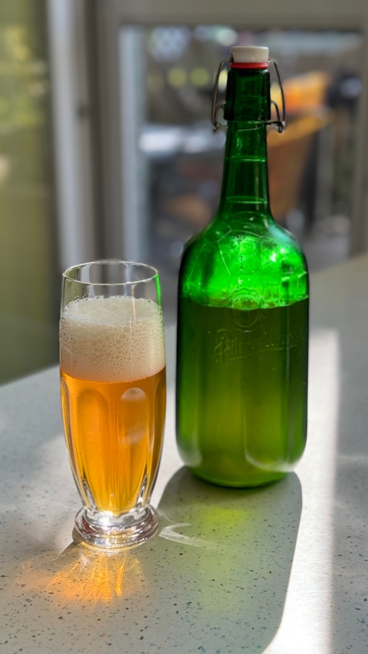 Mein erstes Sauerbier. Mit der philly sour. Ist ein splitsud geworden einmal ohne und einmal mit enorm viel Frucht (Grapefruit, Rhabarber, Erdbeeren, Aprikose), schmeckt jetzt überhaupt nicht mehr nach Bier sondern einem Gspritztem mit Grapefruitsaft.