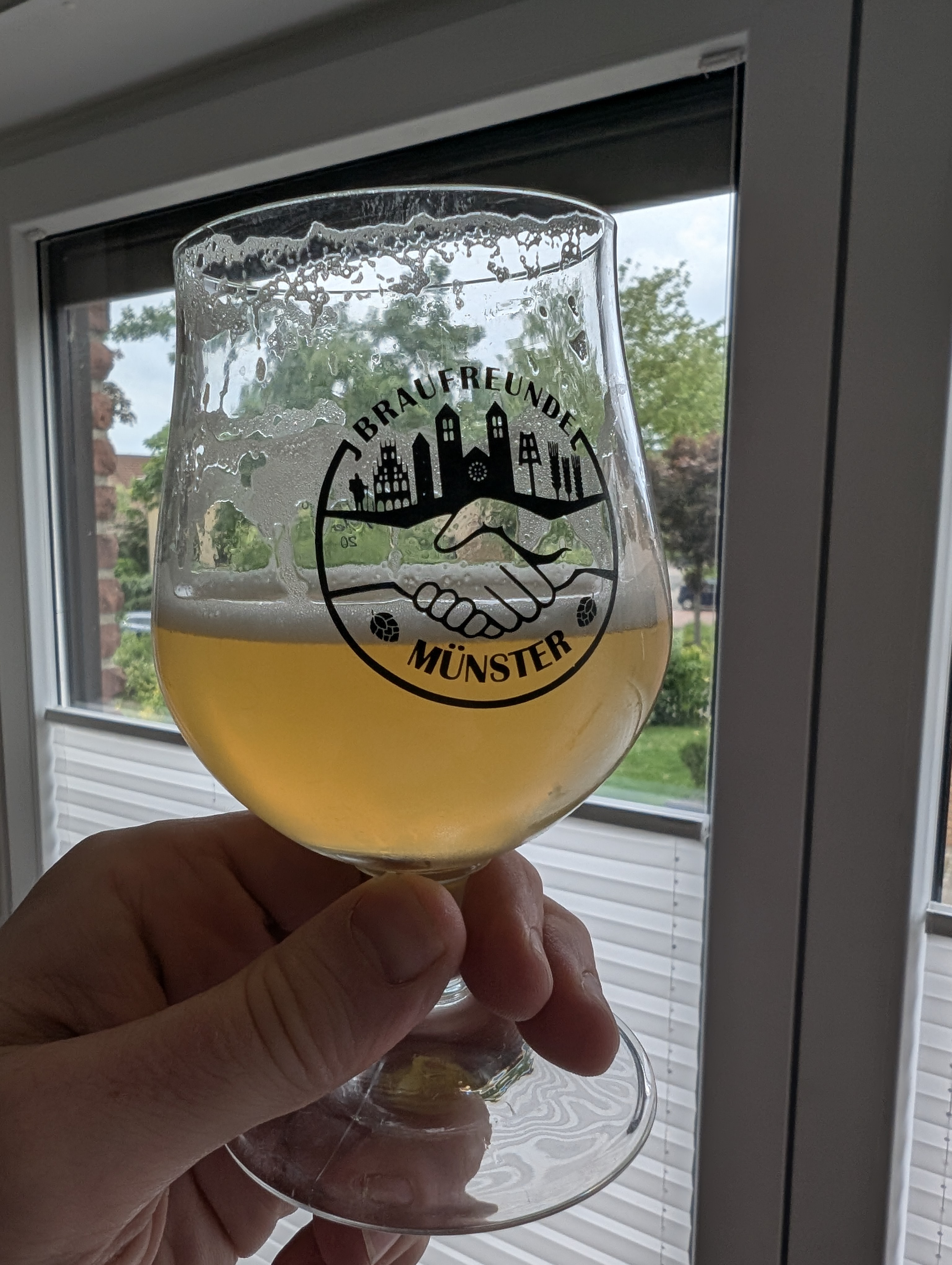 Soweit die graue Theorie. Das Bier ist sehr (!) hell im Glas, mit einer feinen Schaumkrone, die zwar wenig ist, aber stabil (Bild folgt).