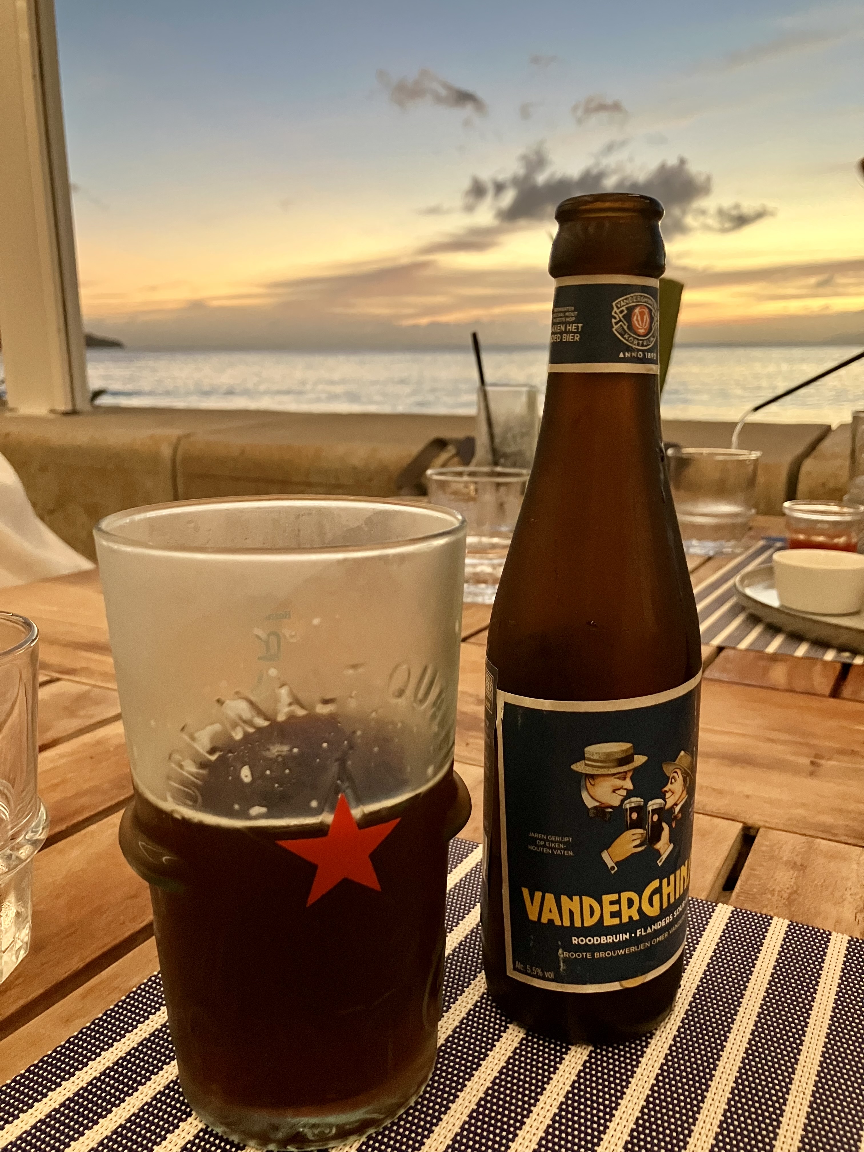 "Moinette Blonde" von Dupont. Schöne Kombination von fruchtigen Estern und Nelke, schöne Süße und zugleich straff bitter. Mir gefällt es sehr. Die 8,5 % vol. merkt man aber schon.