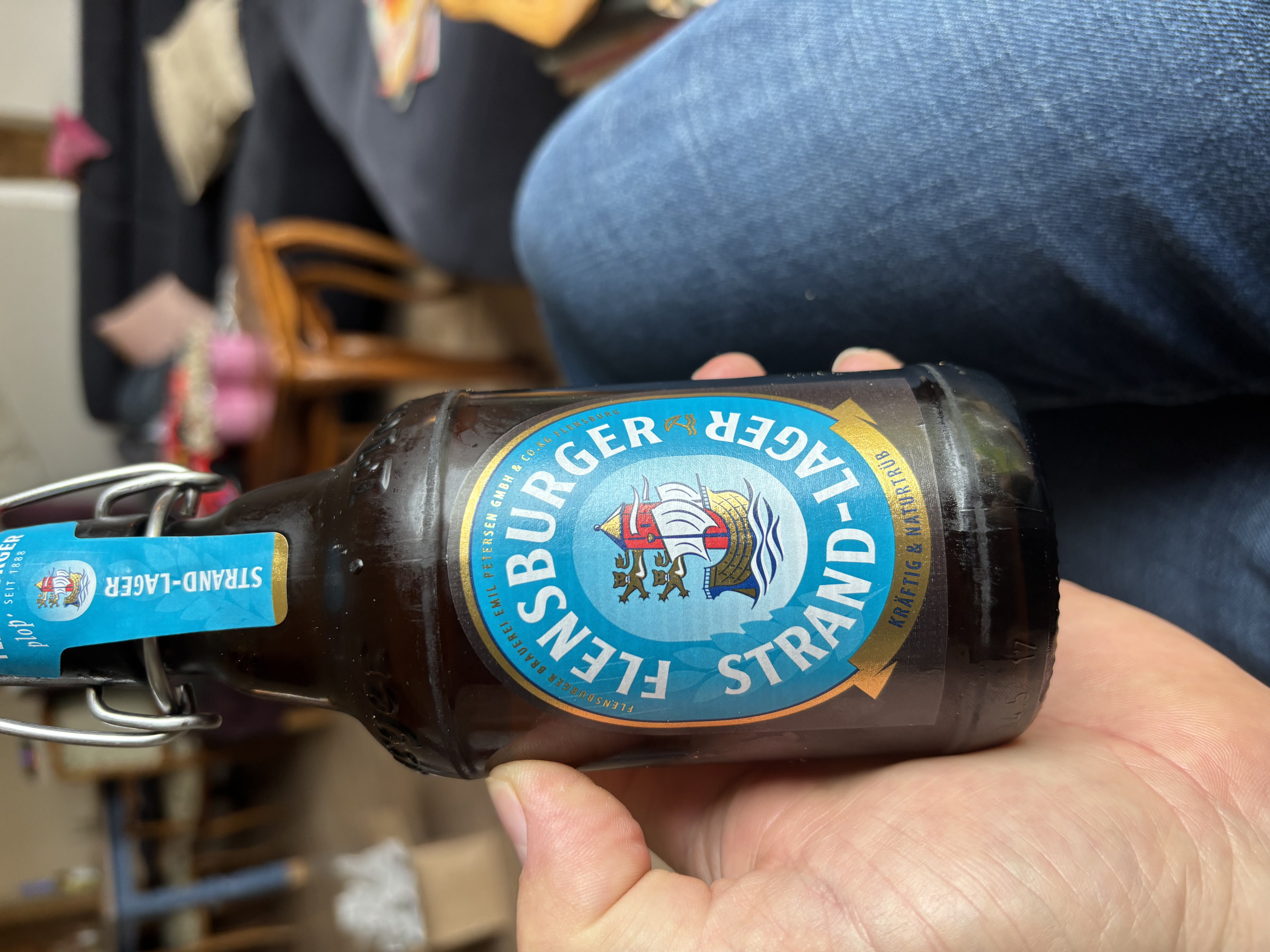 Brocken-Bräu, Urlaubsmitbringsel. Nettes Lager, schön goldgelb, mild, süffig. Das Etiketten Design ist "faszinierend".