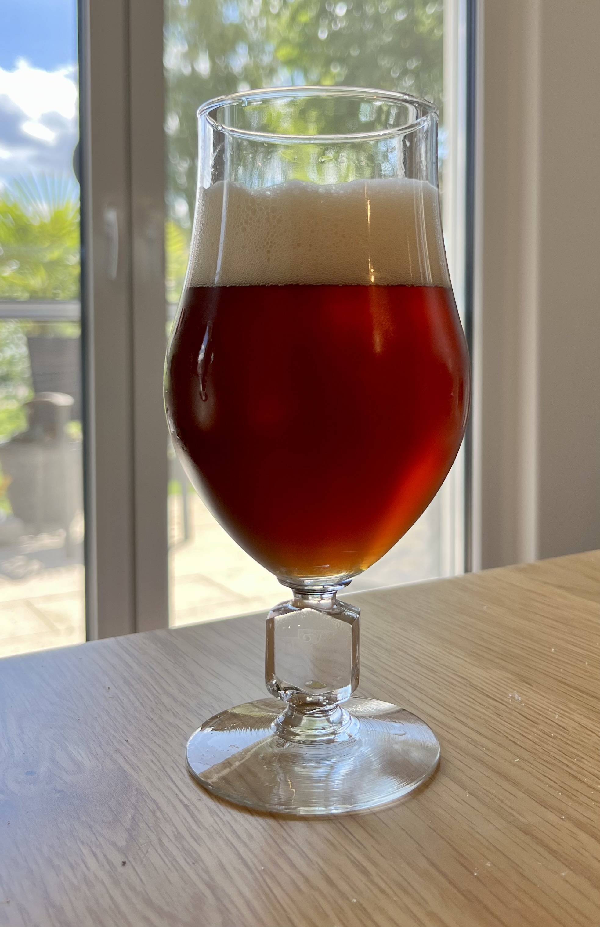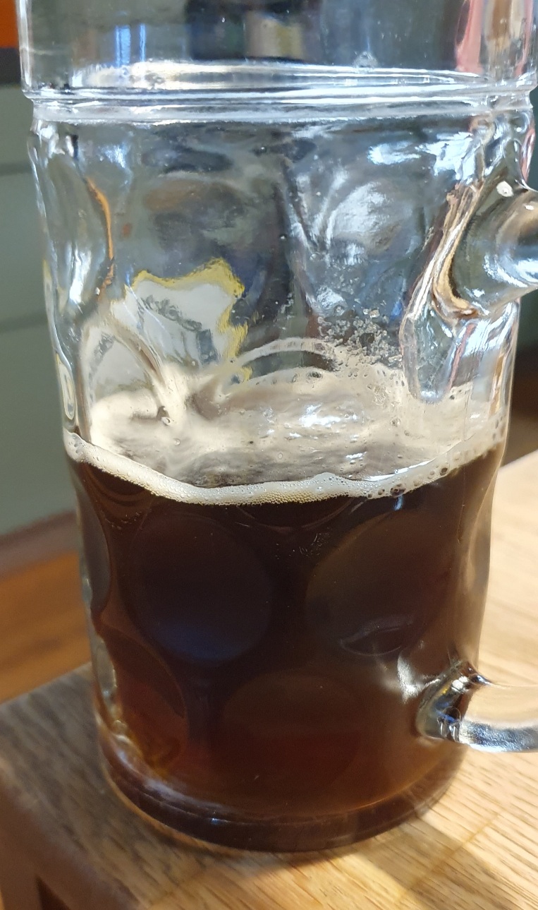 Nicht gerade, aber gestern Abend. Unser vor ein paar Tagen abgefülltes Wiener Lager. Nach ein paar Wochen im Keg ist es wunderbar klar. Und es schmeckt auch. Malzig mit einer sanften Hopfennote.