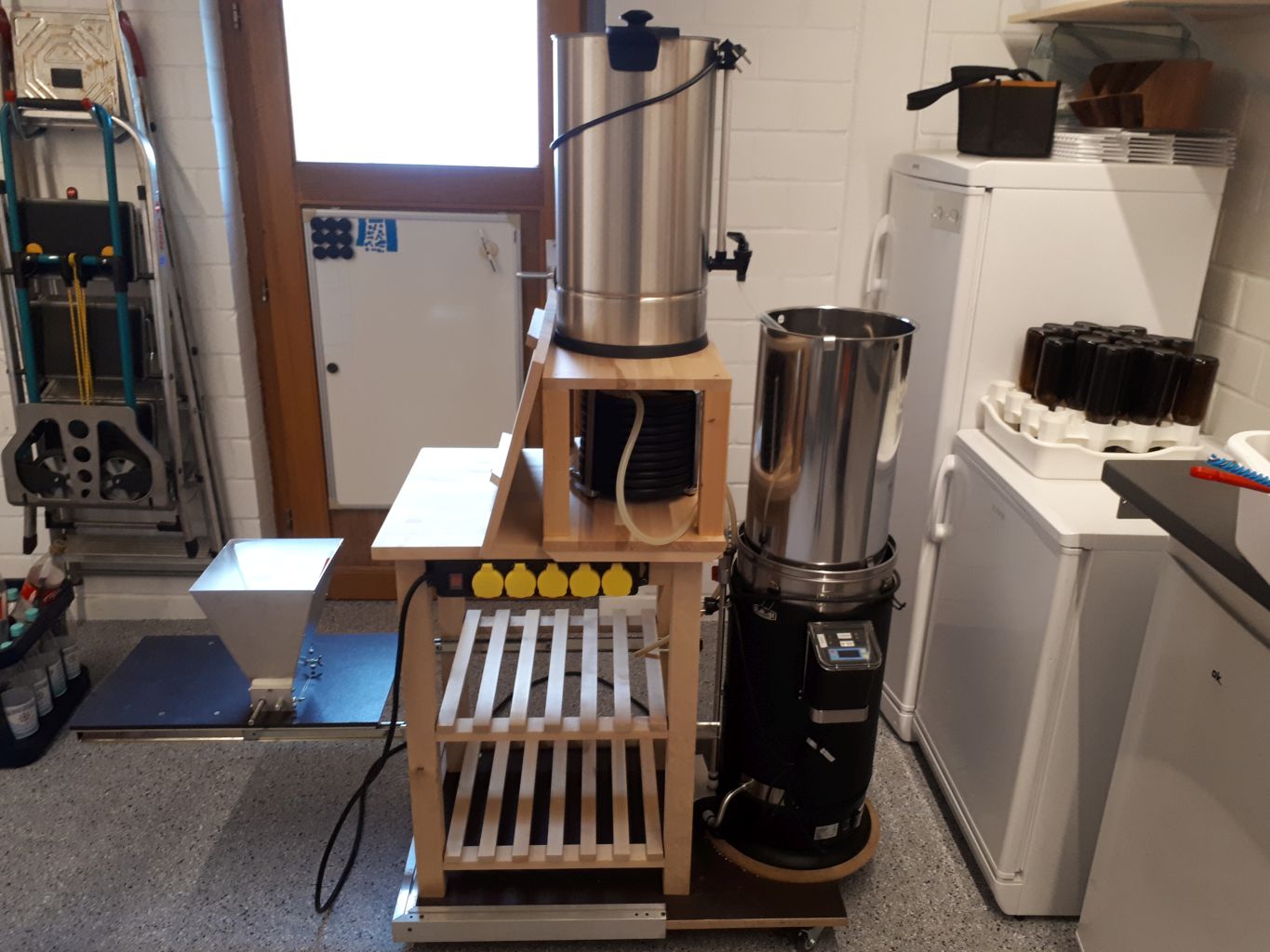 30L-Klasse; 50l Topf, 3.5k Induktion, Thermoport mit Läuterhexe, 2x Edelstahl Gärfaß, 2x Kühlschrank mit Inkbird, NC-Kegs und GDA für Flaschen.