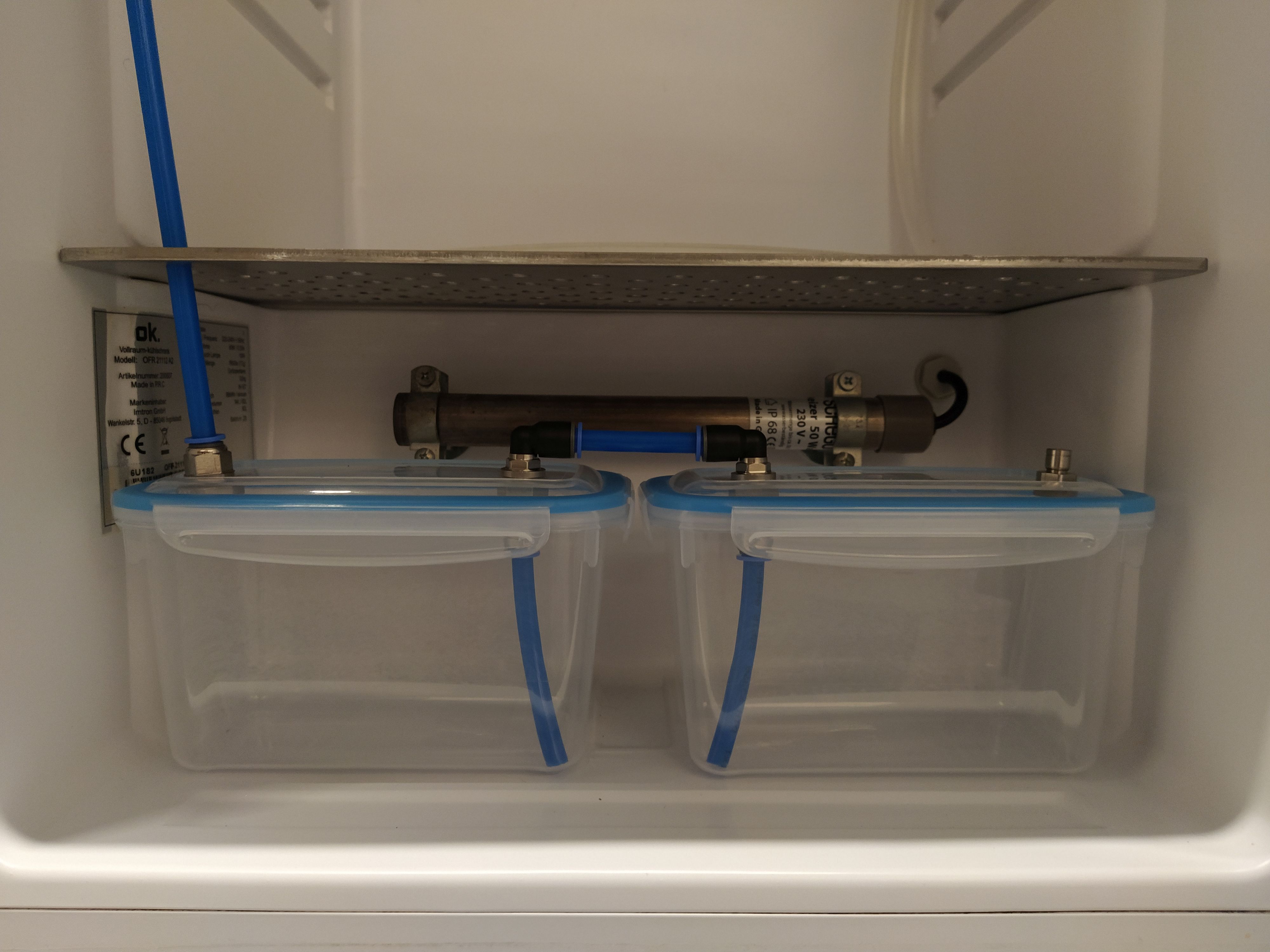 Als Alternative hatte ich einen sog. Urinbeutel https://www.inkosafe.de/urinbeutel-mit- ... 10-stueck/ , den ich aber als zu fummelig in meinem Gärschrank fand. Für den einen oder anderen könnte der aber eine gute Lösung sein.
