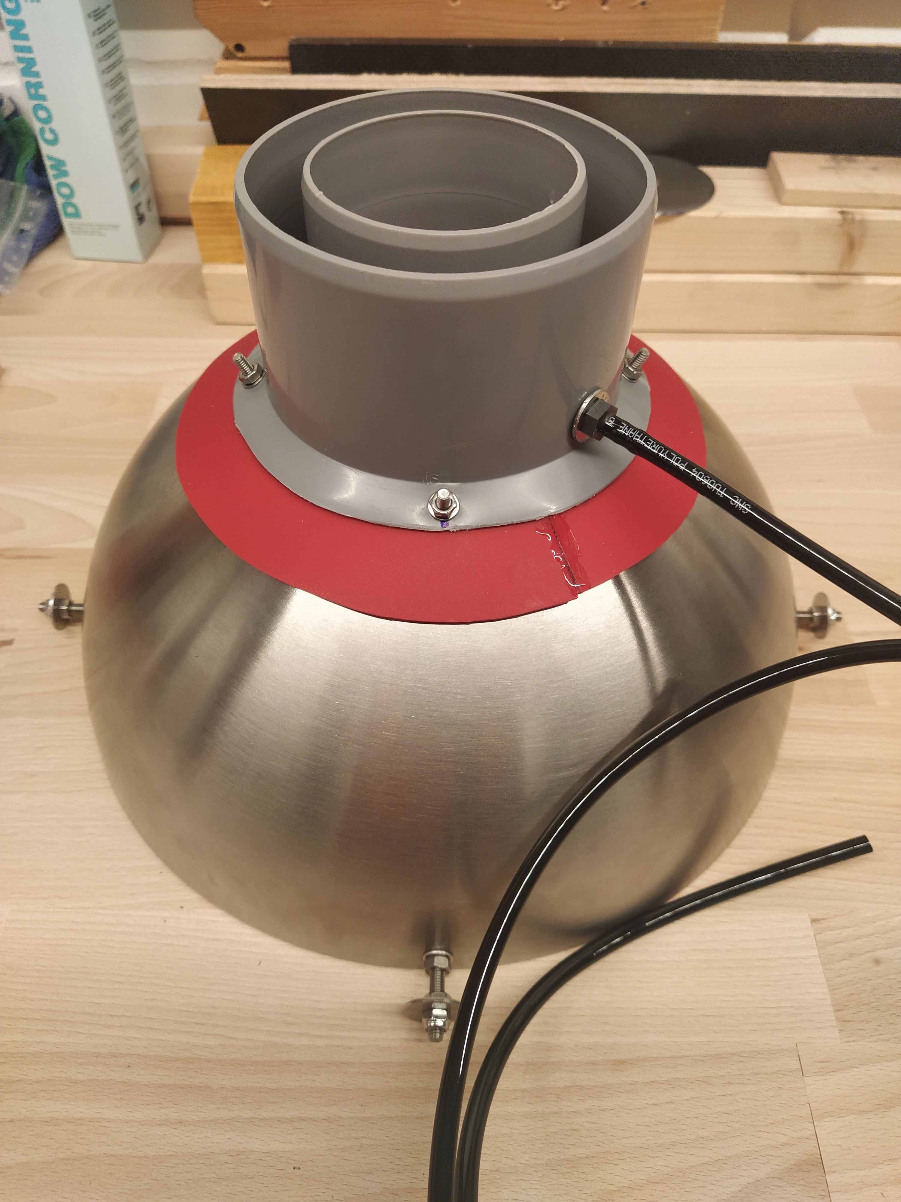 Ich hatte mal überlegt zwei HT-Rohre ineinander zustecken und unten einen entsprechenden HT-Deckel auszuschneiden, so das zwischen den zwei Rohren der Raum zum Auffangen des Kondensats entsteht. Bleibt nur die Frage, wie man das dicht bekommt und wie die Verbindung zur Salatschüssel realisiert wird.