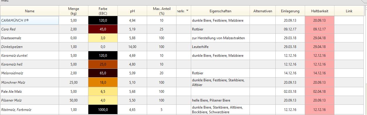 Aber was ist mit Rohstoffen, die noch nie genutzt wurden? Z.B heißt bei mir ein Malz "Weizenmalz Ireks 1/23". Wenn der Sack noch nicht irgendwo angefangen wurde, ist der nicht in der Einkaufsliste drin.