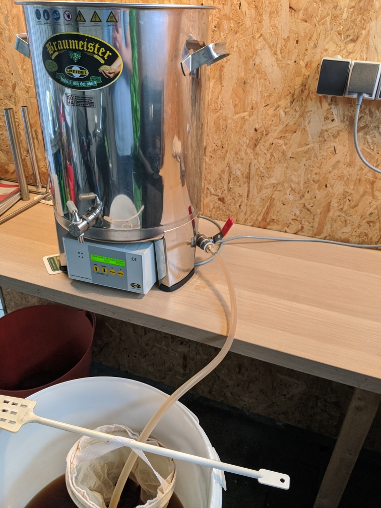 A propos Abpumpvorrichtung: jedes zweite oder dritte Mal, wenn ich gegen Ende des Hopfenkochens das Abpumprohr einsetzen will, merke ich, dass einer (oder heute beide) Stöpsel nicht mehr in den Löchern stecken. Das nervt einigermassen, insbesondere, wenn man sich an das schnelle Umfüllen gewöhnt hat.