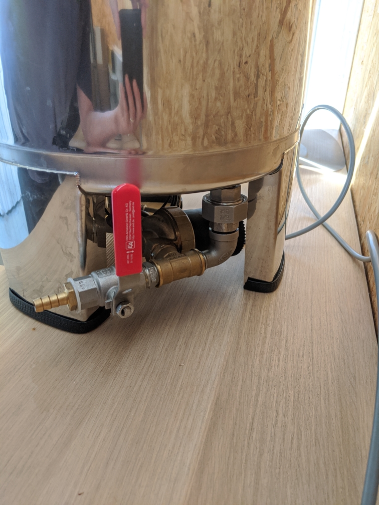 Ich hab' nen Ventil mit T-Stück eingebaut. Erleichtert die Reinigung und ich kann die Würze komplett über einen Filter ablaufen lassen. Da kommt aber immer ziemlich viel Schmodder mit. Dafür muss ich mir noch was überlegen.