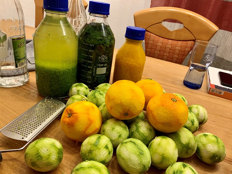 Kurze Frage. Ich bereite gerade den Schalenabrieb von 26 Limetten und 12 Orangen für mein Mojito Sour vor, das am Wochenende gebraut wird. Der Abrieb liegt bis zum Gärungsende in Rum ein.