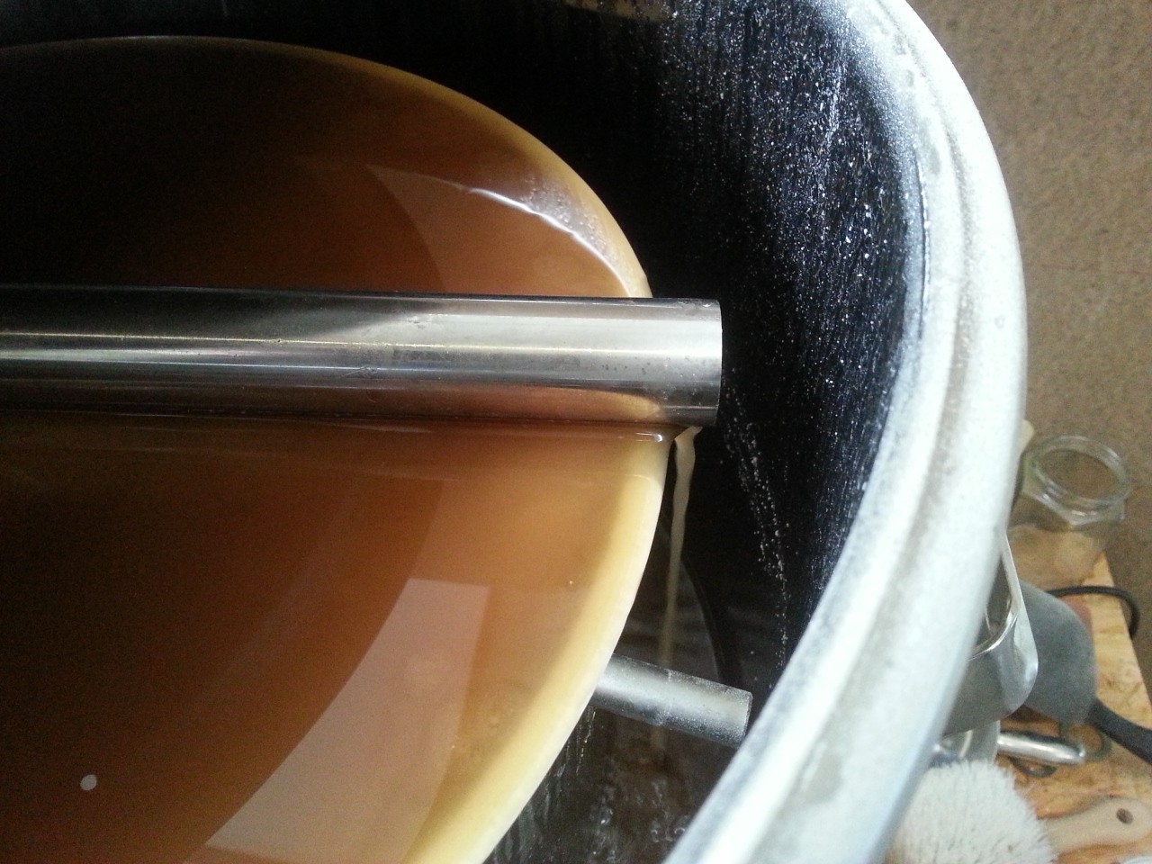 Ich habe nun begonnen, dass Feinsieb kurz vor Kochende zwischen Kesselwand und Heizspirale runterszuschieben. Dieses dient so als Filter vor dem Ausguss, was sich sehr gut bewährt hat. Wenn ich dann am Schluss nach alles rauskippen möchte, macht aber dieser "Filter" relativ schnell zu.