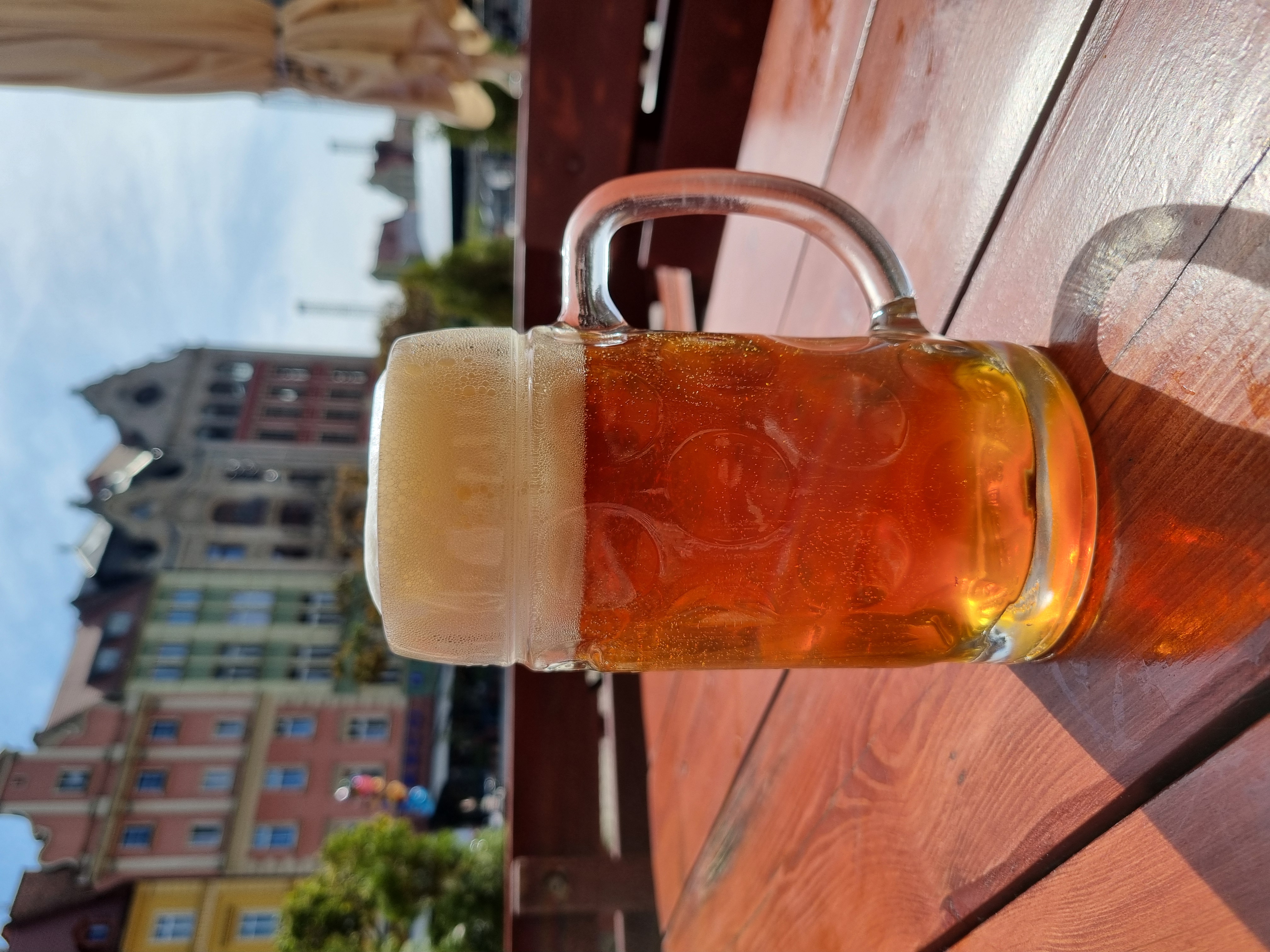 Der Schluck: für ein bernsteinfarbenes Bier mit knapp 6% dezente Karbonisierung, das passt sehr gut. Keiner will das sprudelig wie ein Weißbier. Geschmacklich leichte Malzigkeit, feine Bittere, die nicht nachhängt. Danach tendenziell trockener Abgang, macht Lust auf den nächsten Schluck.