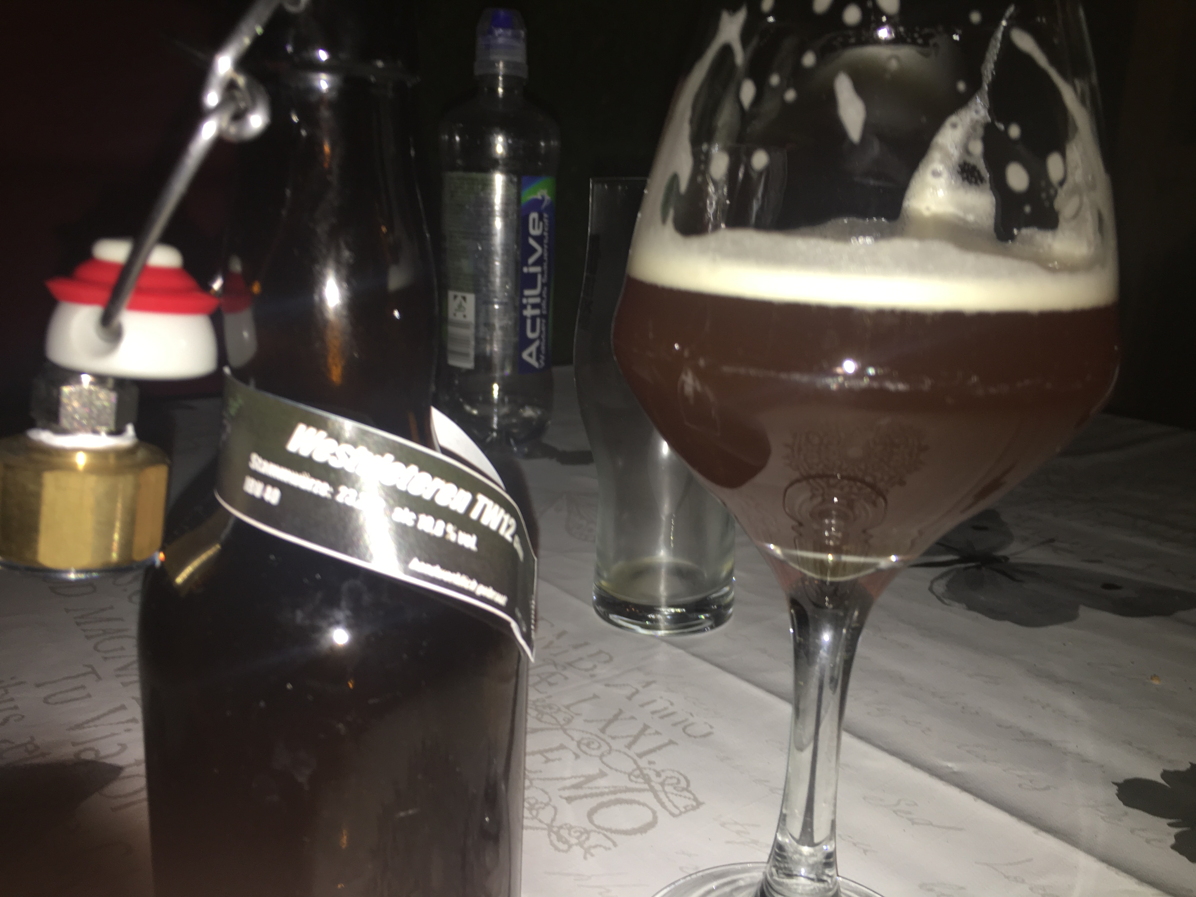 Hatte gerade ein echt sehr leckeren Barley Wine im Glas, hab aber leider kein Foto. Und zwar der Nussknacker Barley Wine von Brew Age aus Österreich. Ich habe bisher keine Erfahrungen mit diesem Bierstil gehabt, aber das war echt toll. Mit der Zeit wurde das Bier wärmer im Glas und hat Stück für Stück immer mehr von seinem durchaus recht intensiven Aromen offenbart. Mir ging einfach nicht das Bild von einem Snickers (ohne die Erdnüsse) aus dem Kopf. Meine Güte, war das Karamellig, aber lecker! Dazu kamen Assoziationen von Rosinen bis Pflaumen. Gelegentlich noch leicht getoastetes Getreide. Aber sehr deutlich im Vordergrund das Karamellbonbon. Ich hab mir das Bier mit einem biervernarrten Freund geteilt und das war gut so. Ein schönes Bierchen, dem man die 10% gar nicht so anmerkt...